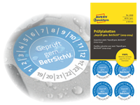 Sie haben die Wahl, ob Sie zur nächsten Betriebsmittelprüfung schon bereits vorbedruckte Prüfplaketten benutzen möchten, oder diese selbst gestalten wollen. Die Prüfplaketten aus speziellen Materialien z.B. aus besonders wetterfesten Vinyl, abziehsicherer Folie welche sich nur in Einzelteilen abziehen lässt, aus wiederablösbarem Material oder fälschungssicherer Folie welche beim Abziehen ein Schachbrettmuster hinterlässt, sind für jede Anwendung geeignet