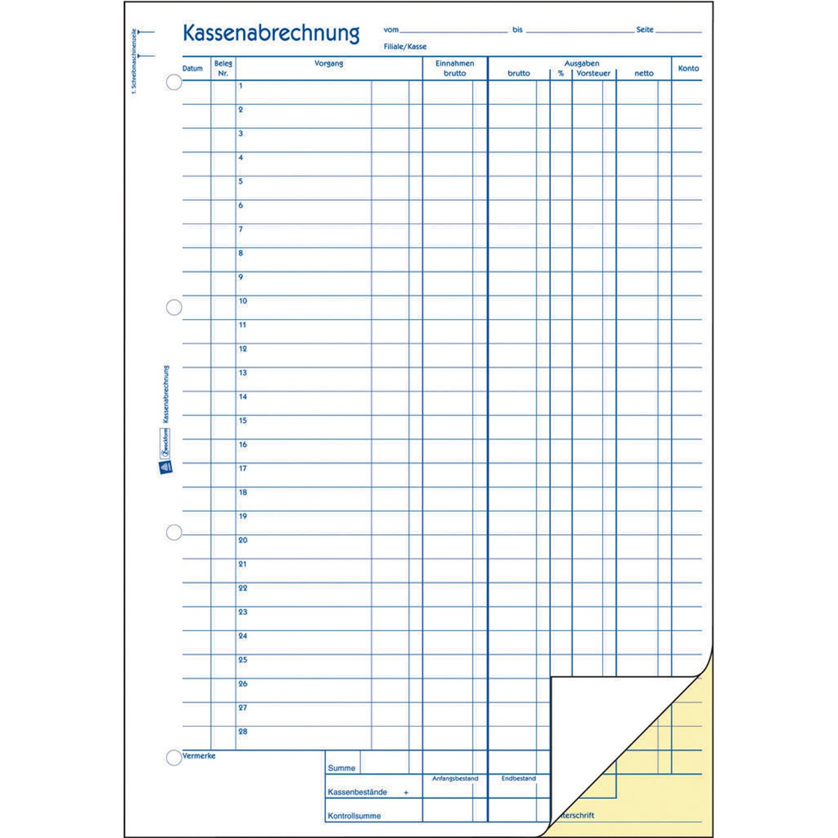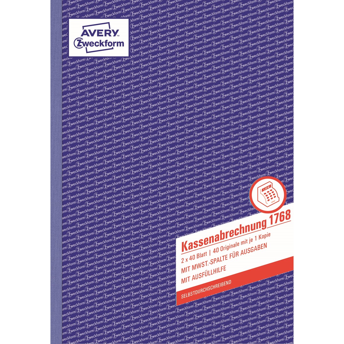 Die Kassenabrechnung 1768 von AVERY ZWECKFORM im DIN A4 Format gibt Ihnen einen leichten Überblick über Ihre Ein-und Ausgaben. Alle Vorgänge werden einzeln erfasst, Belegen zugeordnet und ausgabenseitig als Brutto- und Nettobetrag unter Angabe der Vorsteuer (Prozentsatz, Betrag) dokumentiert. Die Kassenabrechnung beinhaltet 40 weiße Abrechnungsformulare mit jeweils einem gelben, selbstdurchschreibenden Durchschlag mit Vordruck. Die Kassenbücher und Formulare von Avery Zweckform sind zuverlässige, bewährte Hilfen für Ihre Buchhaltung und werden regelmäßig von Rechtsexperten geprüft.