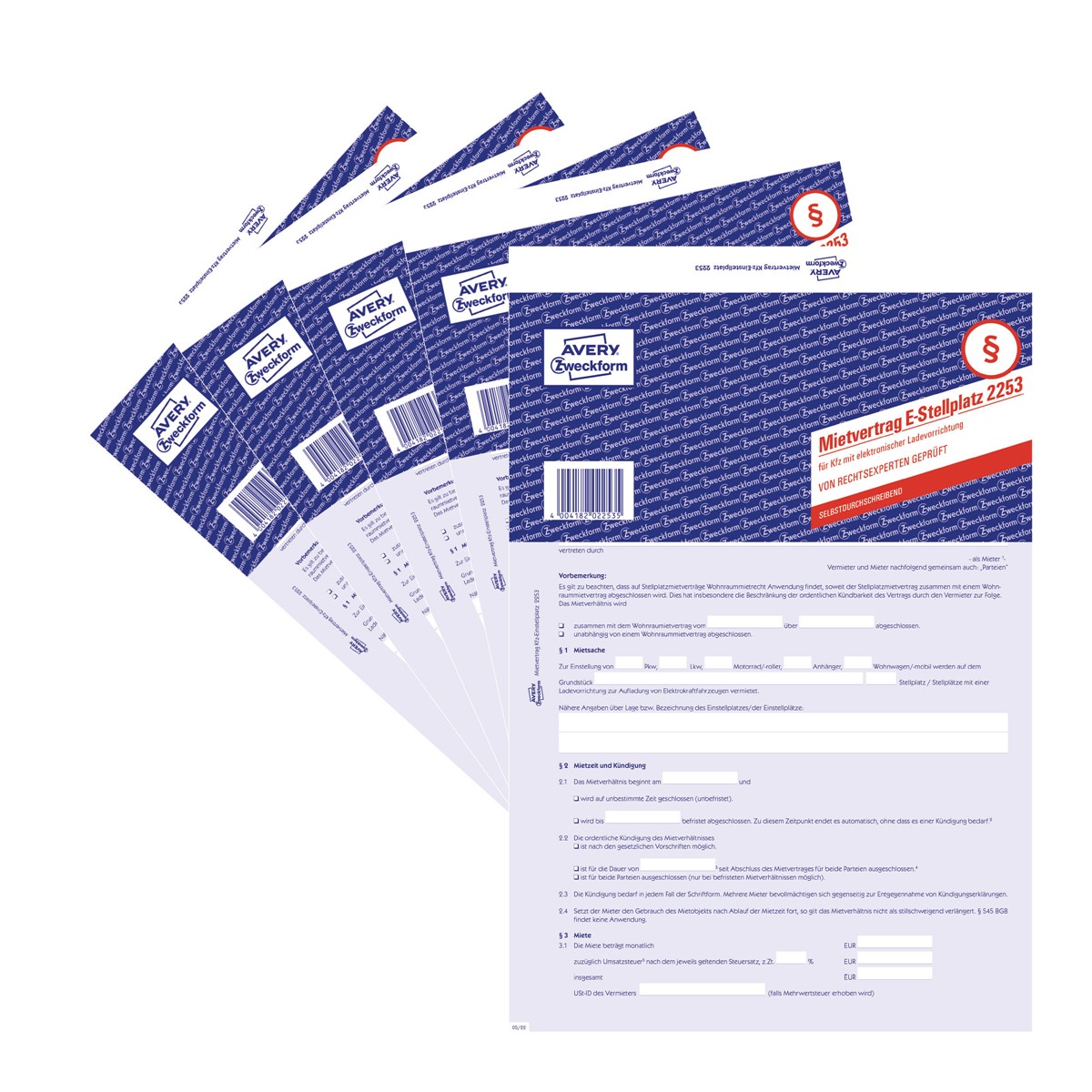 Der Mietvertrag für Garagen und Stellplätze mit Ladevorrichtung für Elektrofahrzeuge im 5er Pack von AVERY ZWECKFORM im DIN A4 Format schafft klare Verhältnisse, egal ob Sie Mieter oder Vermieter sind.