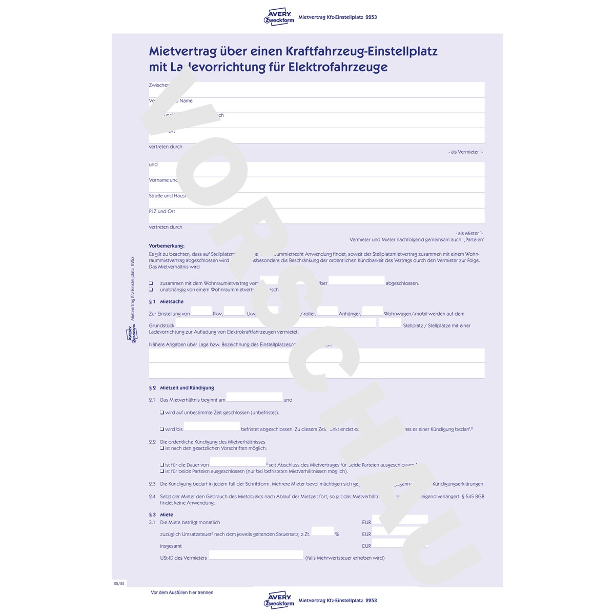 Avery Zweckform Mietvertrag Kfz-Einstellplatz mit elektr. Ladevorrichtung