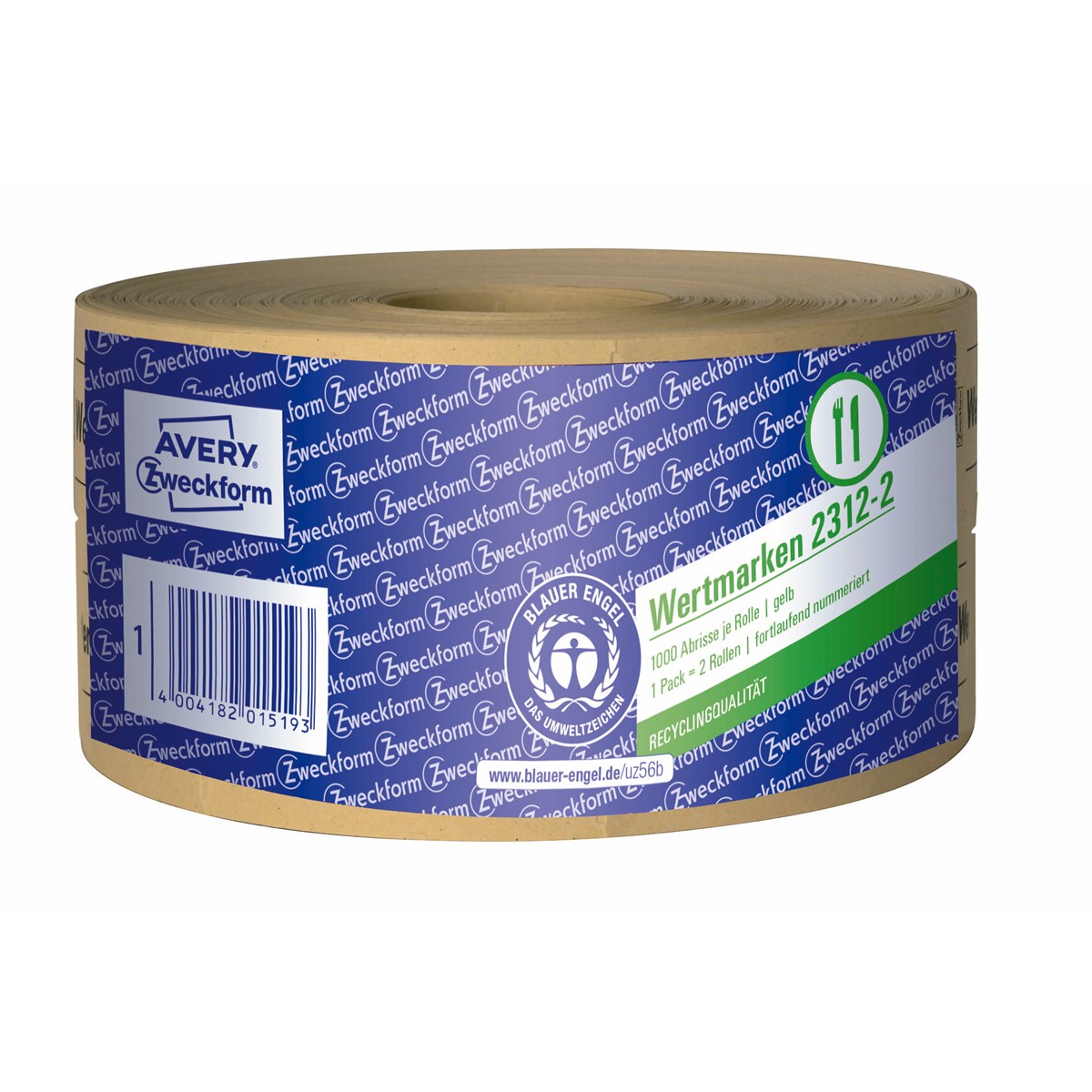 Die Wertmarken 2312-2 von AVERY ZWECKFORM im Format 57x30 mm sind die ideale Organisationshilfe für jegliche Art von Veranstaltung. Die Rolle enthält 1000 fortlaufend nummerierte gelbe Bons. Dank der Wertmarken von Avery Zweckform können Sie den Umgang mit Bargeld vermeiden. Die Formulare und Vordrucke von Avery Zweckform sind zuverlässige, bewährte Hilfen für Veranstaltungen und Events.
