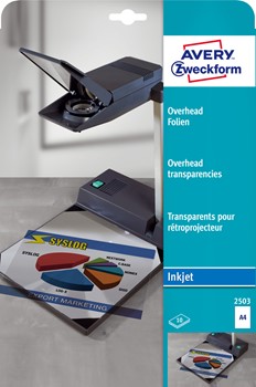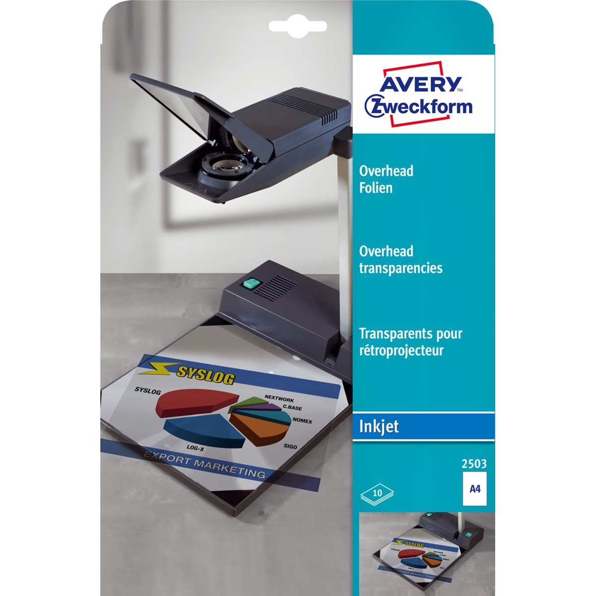 Mit den klaren, beschichteten Overhead-Folien 2503 für Inkjetdrucker von AVERY ZWECKFORM im DIN A4 Format können Sie hochwertige Präsentationen für die nächste Besprechung oder Unterrichtsstunde erstellen. 10 Overheadfolien pro Packung. Die A4 Overheadfolie mit einer Folienstärke von 0,11 mm sorgt dank Inkjet-Spezialbeschichtung für eine brillante Farbwiedergabe und konturenscharfen Farbpunktverlauf. Die schnelle Farbaufnahme verhindert Verschmieren und Verlaufen der Tinte. Die Overheadfolie ist stapelverarbeitbar und lösemittelfrei. Gestalten und drucken Sie Ihre Overheadfolien von Avery Zweckform einfach und schnell am PC mit Ihren Texten und Bildern. Für alle gängigen Inkjetdrucker geeignet.
