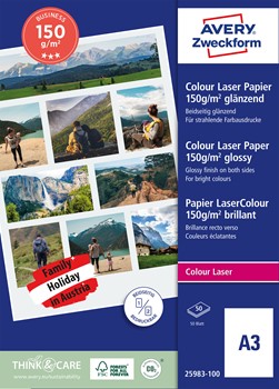 Das Laser Papier überzeugt durch Hitzebeständigkeit und der besonderen Oberflächenbeschaffenheit. Damit schont das Farblaser Papier sensible Gerätekomponenten und garantiert beste Druckqualität. Das Laser Papier bietet eine extra kräftige Papierqualität von 150 g und ist beidseitig glänzend beschichtet. FSC®-zertifiziert mit Papier aus vorbildlich bewirtschafteten Wäldern. Das Farblaser Papier von Avery Zweckform eignet sich besonders für Broschüren und Dokumente mit Bild- und Textanteil.