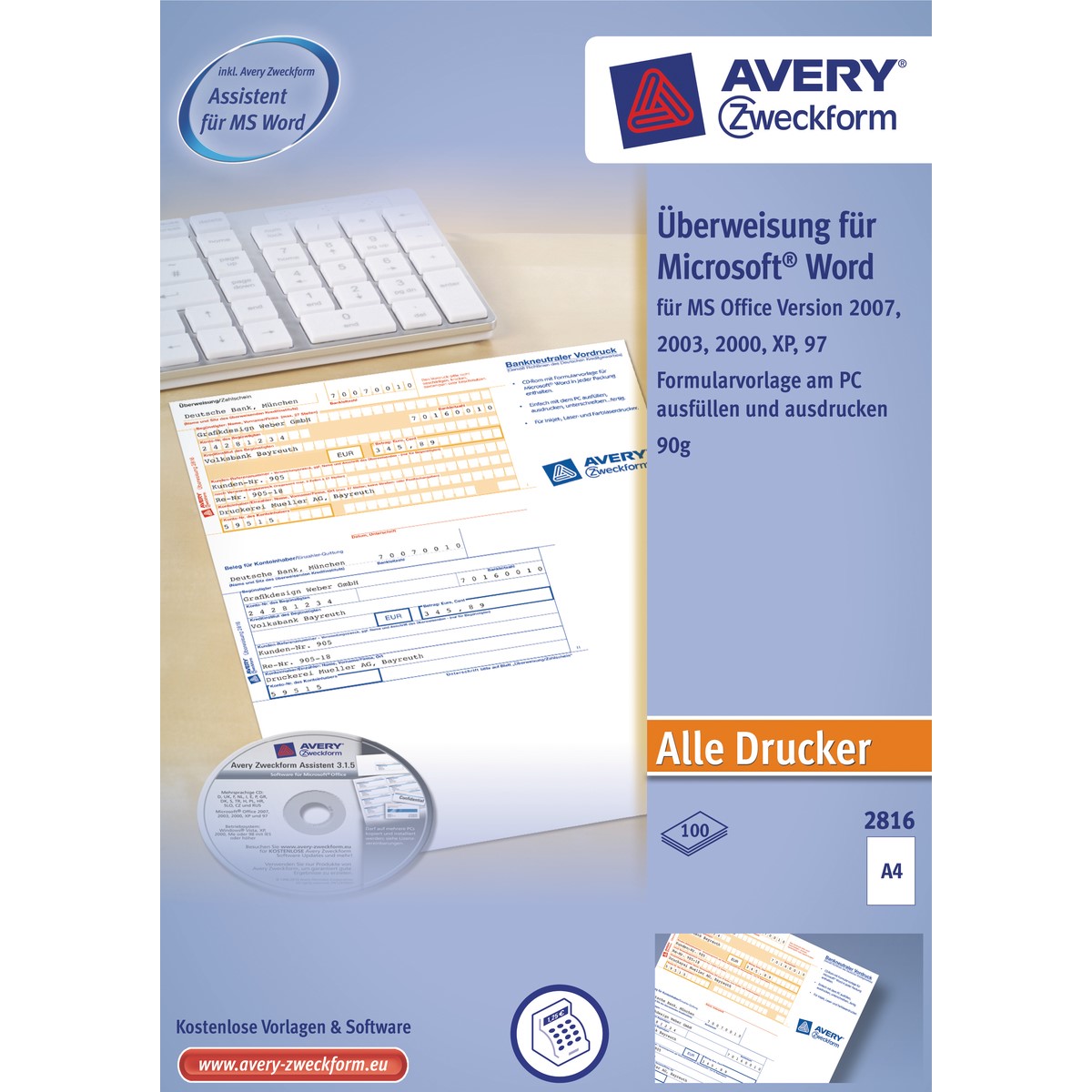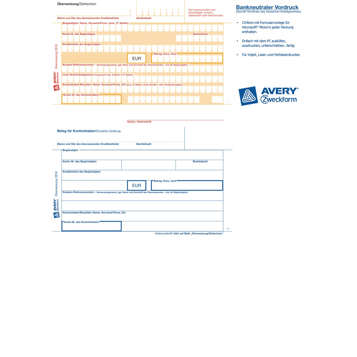 Avery Zweckform Überweisung/Zahlschein, inklusive Software-CD, A4