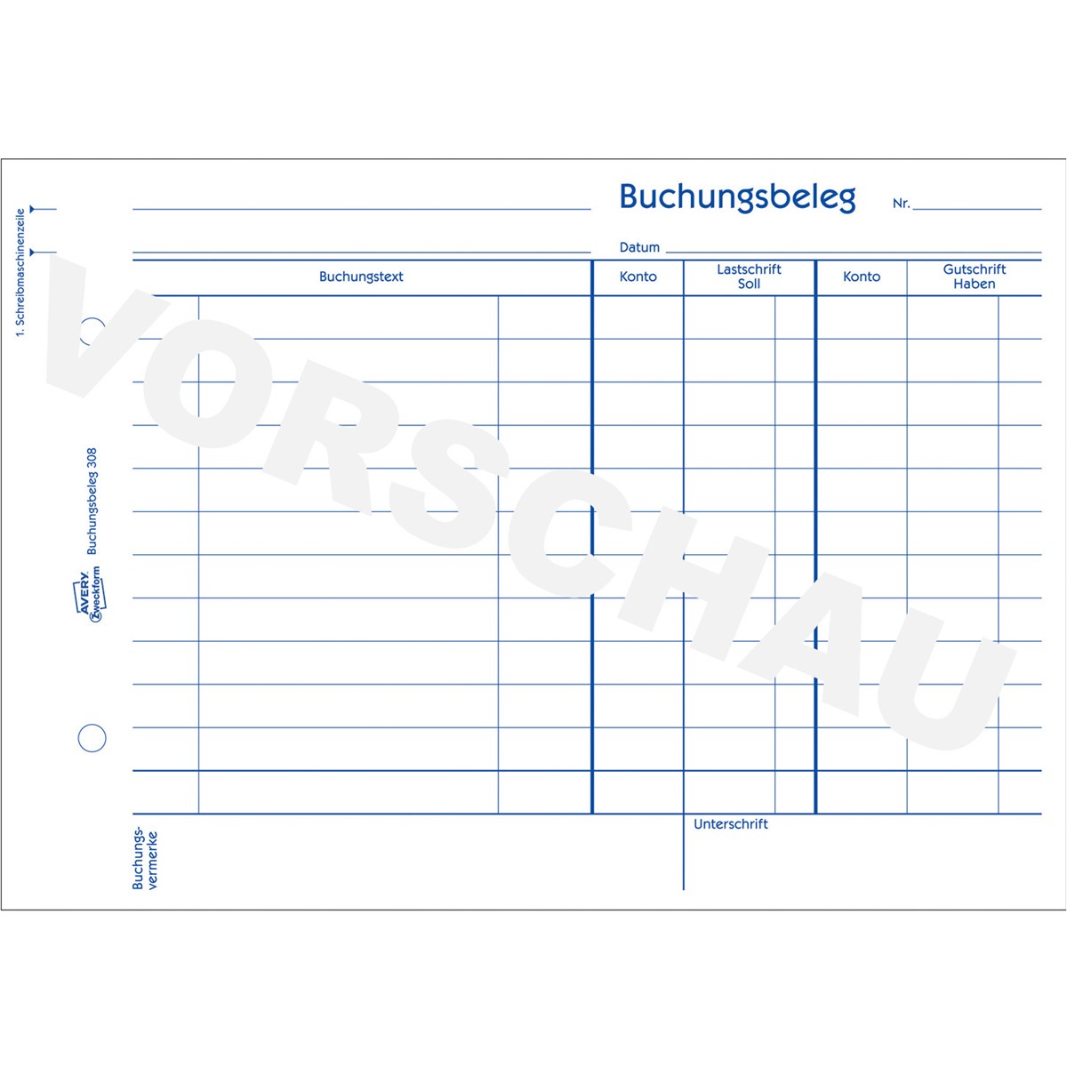 Der Buchungsbeleg 308 von AVERY ZWECKFORM im DIN A5 Querformat sorgt für eine lückenlose Buchhaltung. Der Buchungsbeleg mit T-Konto, Buchungstext/-vermerk enthält auch eine Unterschriftenzeile. Das Formularbuch beinhaltet 50 weiße Originale mit Mikroperforation. Die Buchungsbelege und Kassenformulare von Avery Zweckform sind zuverlässige, bewährte Hilfen für Ihre Buchhaltung und Steuer und werden regelmäßig von Rechtsexperten geprüft.