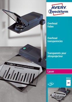 Mit den Overhead-Folien für S/W-Laserdrucker und Kopierer 3552 von AVERY ZWECKFORM im DIN A4 Format können Sie hochwertige Präsentationen für die nächste Besprechung oder Unterrichtsstunde erstellen. 100 Overheadfolien pro Packung. Die A4 Overheadfolie, mit einer Folienstärke von 0,10 mm sorgt dank Spezialbeschichtung für konturenscharfe Ausdrucke und beste Tonerhaftung. Die Overheadfolie ist stapelverarbeitbar und lösemittelfrei. Gestalten und drucken Sie Ihre Overheadfolien von Avery Zweckform einfach und schnell am PC mit Ihren Texten und Bildern. Für alle gängigen schwarz/weiß Laserdruckern und Kopierern geeignet.