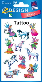 Coole Tattoos für coole kids! Überraschen Sie Ihre Kids mit tollen Tattoos auf der nächsten Geburtstagsparty. Die Kinder werden die zauberhaften Elfen und Einhörner Tattoos lieben! Die temporären Tattoos für die Haut von Z-Deign aus dem Hause AVERY ZWECKFORM sind natürlich kindersicher, von einwandfreier Top-Qualität, dermatologisch geprüft und werden regelmäßig von externen Prüfstellen kontrolliert.