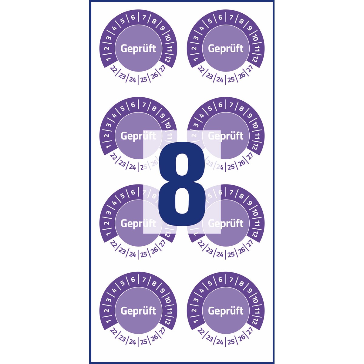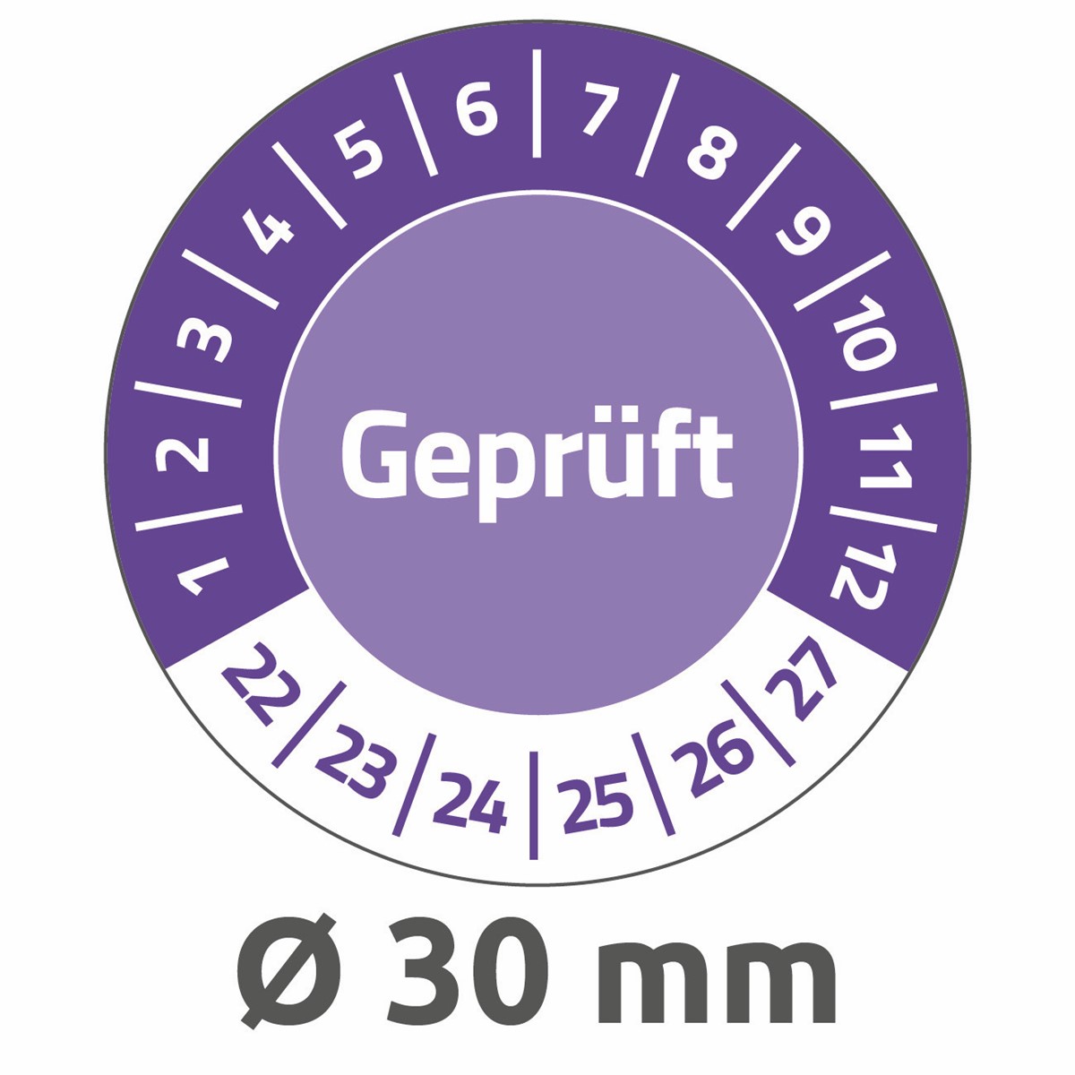 Die violetten Prüfplaketten 6952-2022 im runden, Ø30mm Format von AVERY ZWECKFORM sind besonders wetterfest und widerstandsfähig. 80 Prüfplaketten auf 10 Bogen im praktischen Spenderheft. Die Plaketten "Geprüft" mit 12 Monaten und den Jahren 2022-2027 sind ideal zur individuellen Kennzeichnung Ihres Inventars und Eigentums. Der Aufdruck auf den Etiketten ist kratzbeständig und wetterfest und sie können ganz einfach mittels Folienstift individuell vor Ort beschriftet werden. Die Plaketten haften auf vielen verschiedenen Oberflächen und sind gegen Wasser, Öl, Reinigungs-, Desinfektions- und Lösemittel resistent.