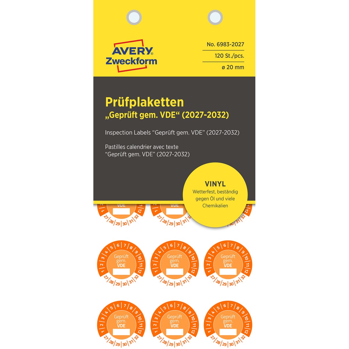 Navigationslinks überspringenStartseite  »  Etiketten  »  Spezial Etiketten  »  Prüfplaketten   »  Vorbedruckte Prüfplaketten   »  6983-2027