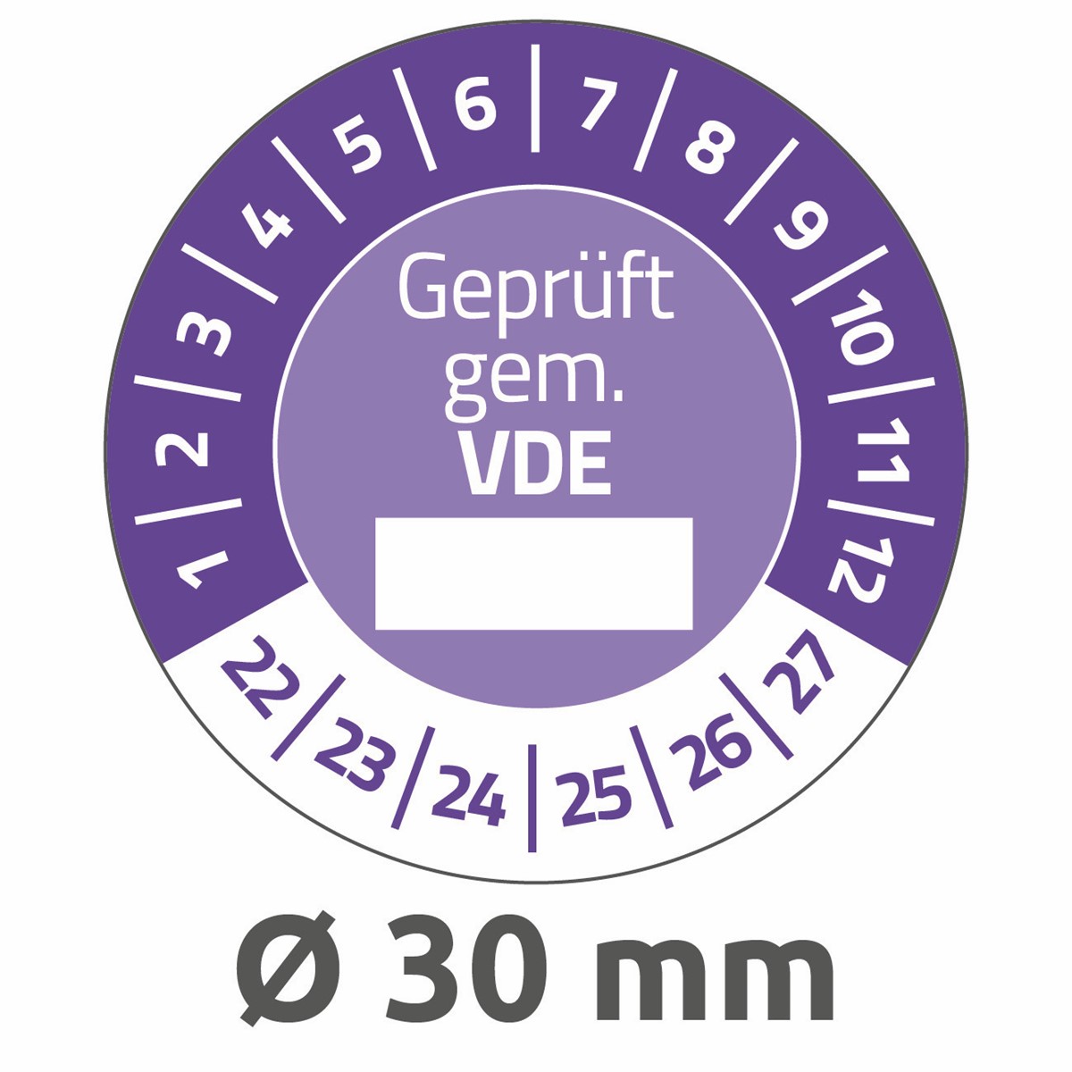Die violetten Prüfplaketten 6986-2022 im runden, Ø30mm Format von AVERY ZWECKFORM sind besonders abzieh- und manipulationssicher. 80 Prüfplaketten auf 10 Bogen im praktischen Spenderheft. Die Plaketten "Geprüft gem. VDE" mit 12 Monaten und den Jahren 2022-2027 lassen sich nur in kleinen Einzelteilen abziehen, was eine Übertragung der Prüfplakette unmöglich macht. Sie beugen damit Manipulation und Missbrauch aktiv vor. Die Prüfplaketten sind ideal zur individuellen Kennzeichnung Ihres Inventars und Eigentums vor Ort und sind einfach mit Folienstift zu beschriften. Die Plaketten haften auf vielen verschiedenen Oberflächen und sind resistent gegen Wasser, Öl, Reinigungs-, Desinfektions- und Lösemittel.