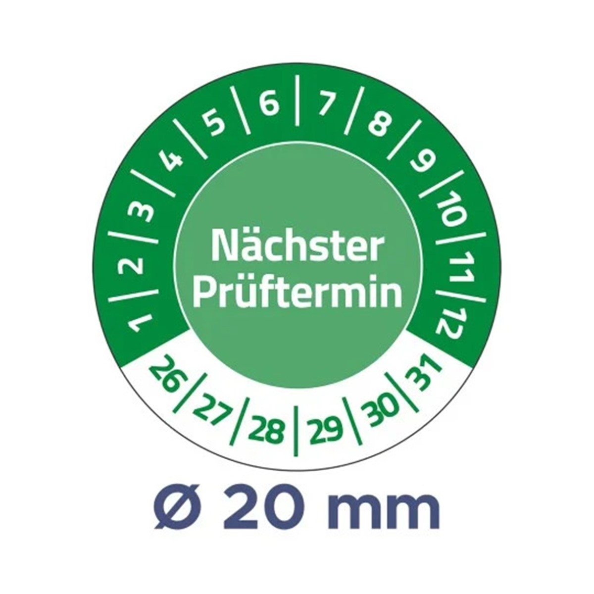 Die grünen Prüfplaketten 6989-2026 im runden, Ø 20 mm Format von AVERY ZWECKFORM sind besonders abzieh- und manipulationssicher. 120 Prüfplaketten auf 8 Bogen im praktischen Spenderheft. Die Plaketten "Nächster Prüftermin" mit 12 Monaten und den Jahren 2026-2031 lassen sich nur in kleinen Einzelteilen abziehen, was eine Übertragung der Prüfplakette unmöglich macht. Sie beugen damit Manipulation und Missbrauch aktiv vor. Die Prüfplaketten sind ideal zur individuellen Kennzeichnung Ihres Inventars und Eigentums vor Ort und sind einfach mit Folienstift zu beschriften. Die Plaketten haften auf vielen verschiedenen Oberflächen und sind resistent gegen Wasser, Öl, Reinigungs-, Desinfektions- und Lösemittel.