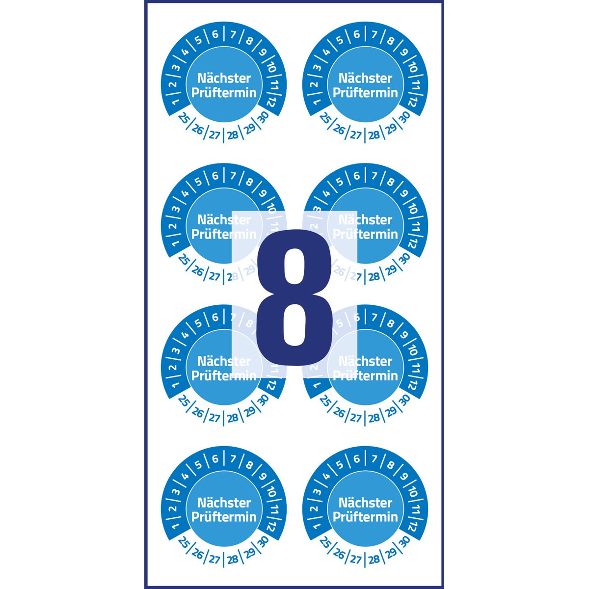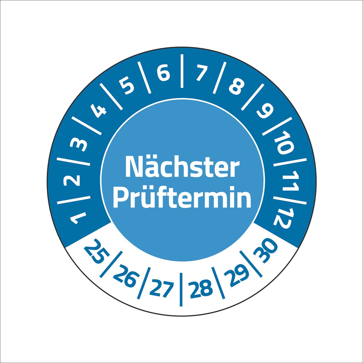 Die Plaketten "Nächster Prüftermin" mit 12 Monaten und den Jahren 2025-2030 lassen sich nur in kleinen Einzelteilen abziehen, was eine Übertragung der Prüfplakette unmöglich macht. Sie beugen damit Manipulation und Missbrauch aktiv vor.