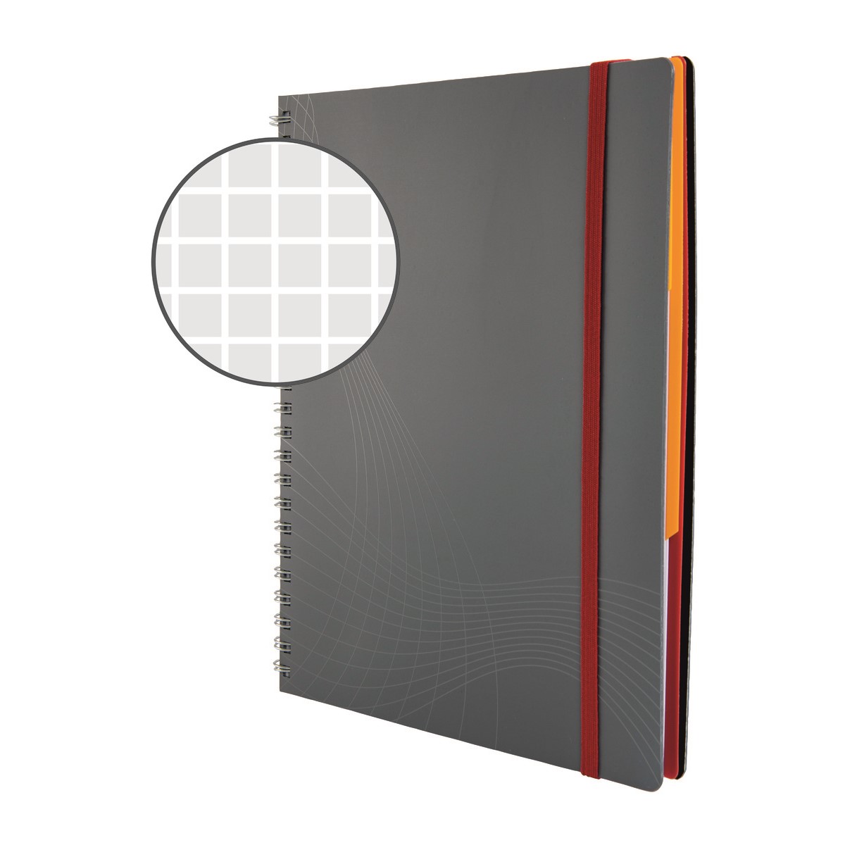 Mit dem kariertem notizio. Notizbuch 7015 von AVERY ZWECKFORM im DIN A5 Format können Sie sich ganz auf das Wesentliche konzentrieren. Dunkle Linien stören - weiße nicht! Die Notizbuch Blätter mit hellgrauem Hintergrund und weißer Lineatur strengen die Augen weniger an und lenken nicht ab. Beim Kopieren, Scannen oder Faxen werden die Hilfslinien sogar nahezu unsichtbar! Die spiralgebundene A5 Kladde mit robustem Kunstoffeinband in hellgrau erlaubt Ihnen höchste Flexibilität und Funktionalität. Das karierte Notizbuch bietet exzellenten Schreibkomfort durch extra glattes, tintenfestes Papier mit einer Grammatur von 90 g/m². Flexibel versetzbare Register strukturieren Ihre Notizen perfekt und ein Verschlussband schützt die Notizen. Die Kopfzeile und der Rahmen sorgen für besonders übersichtliche Aufzeichnungen. Eine Dokumententasche hilft beim Aufbewahren von Visitenkarten und Belegen. Das notizio. Notizbuch ist mit einer Doppelspirale, Mikroperforation und Universallochung versehen.