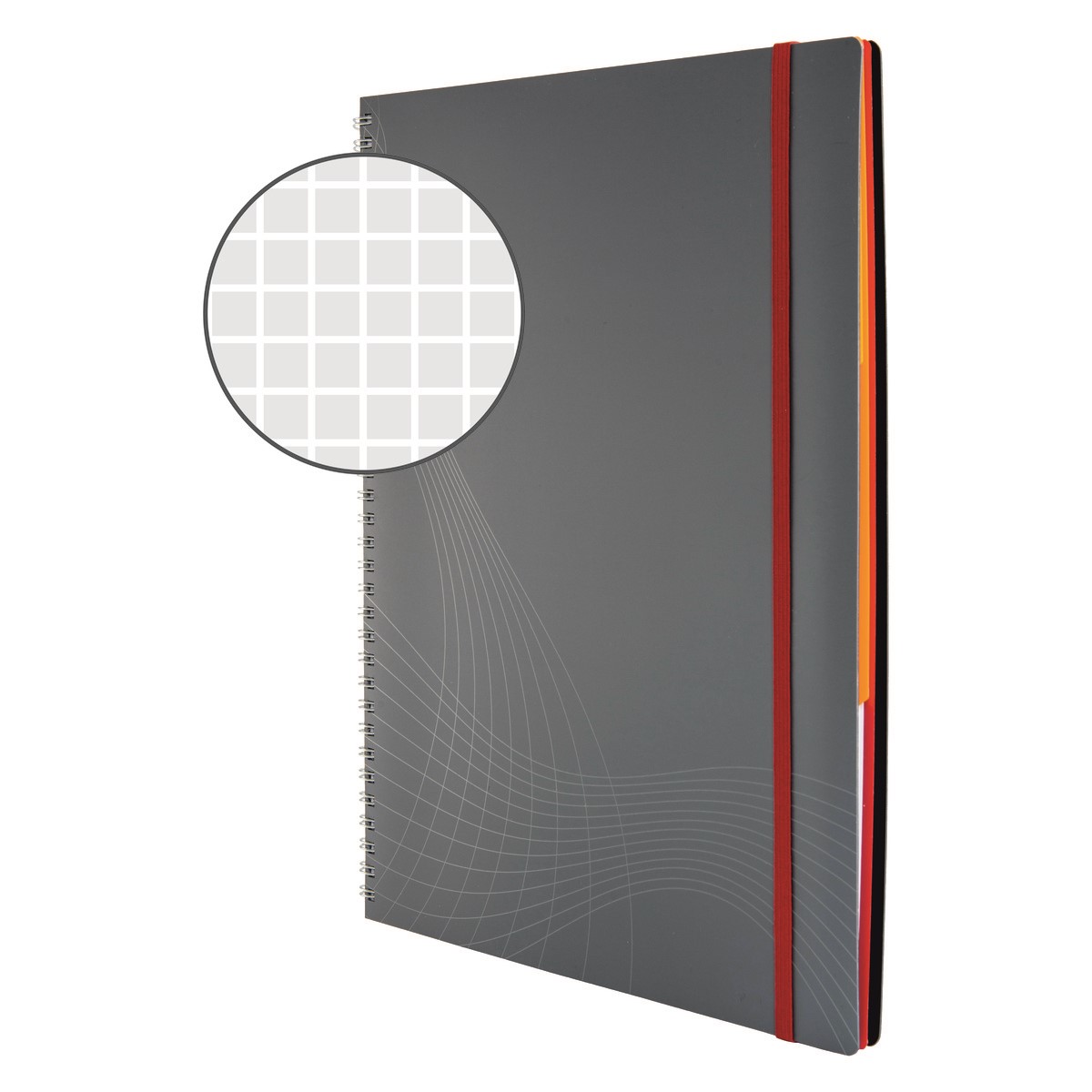 Mit dem kariertem notizio. Notizbuch 7017 von AVERY ZWECKFORM im DIN A4 Format können Sie sich ganz auf das Wesentliche konzentrieren. Dunkle Linien stören - weiße nicht! Die Notizbuch Blätter mit hellgrauem Hintergrund und weißer Lineatur strengen die Augen weniger an und lenken nicht ab. Beim Kopieren, Scannen oder Faxen werden die Hilfslinien sogar nahezu unsichtbar! Die spiralgebundene A4 Kladde mit robustem Kunstoffeinband in grau erlaubt Ihnen höchste Flexibilität und Funktionalität. Das karierte Notizbuch bietet exzellenten Schreibkomfort durch extra glattes, tintenfestes Papier mit einer Grammatur von 90 g/m². Flexibel versetzbare Register strukturieren Ihre Notizen perfekt und ein Verschlussband schützt die Notizen. Die Kopfzeile und der Rahmen sorgen für besonders übersichtliche Aufzeichnungen. Eine Dokumententasche hilft beim Aufbewahren von Visitenkarten und Belegen. Das notizio. Notizbuch ist mit einer Doppelspirale, Mikroperforation und Universallochung versehen.