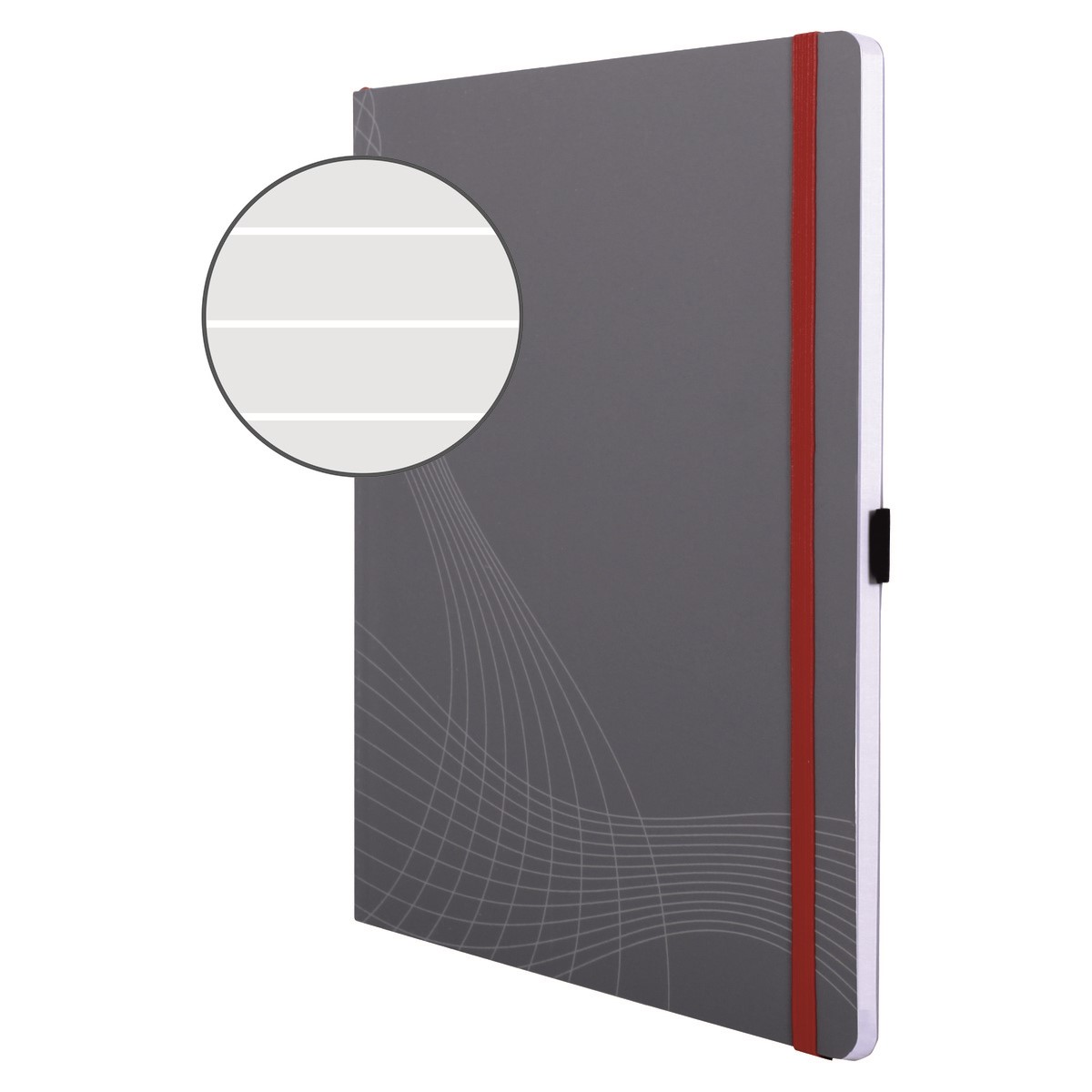 Mit dem liniertem notizio. Notizbuch 7020 von AVERY ZWECKFORM im DIN A4 Format können Sie sich ganz auf das Wesentliche konzentrieren. Dunkle Linien stören - weiße nicht! Die Notizbuch Blätter mit hellgrauem Hintergrund und weißer Lineatur strengen die Augen weniger an und lenken nicht ab. Beim Kopieren, Scannen oder Faxen werden die Hilfslinien sogar nahezu unsichtbar! Die gebundene A4 Kladde mit flexiblem Softcover-Einband in grau eignet sich perfekt für fortlaufende Notizen, Projekte oder jede Art von chronologischen Aufzeichnungen. Das linierte Notizbuch bietet exzellenten Schreibkomfort durch extra glattes, tintenfestes 90g Papier (FSC® zertifiziert). Die hochwertige Bindung lässt die Notizbücher geöffnet absolut flach liegen und erleichtert Ihnen das Schreiben. Das Notizbuch beinhaltet zudem weitere Extra wie z.B. ein Verschlussband, Stiftehalter und eine Innentasche.