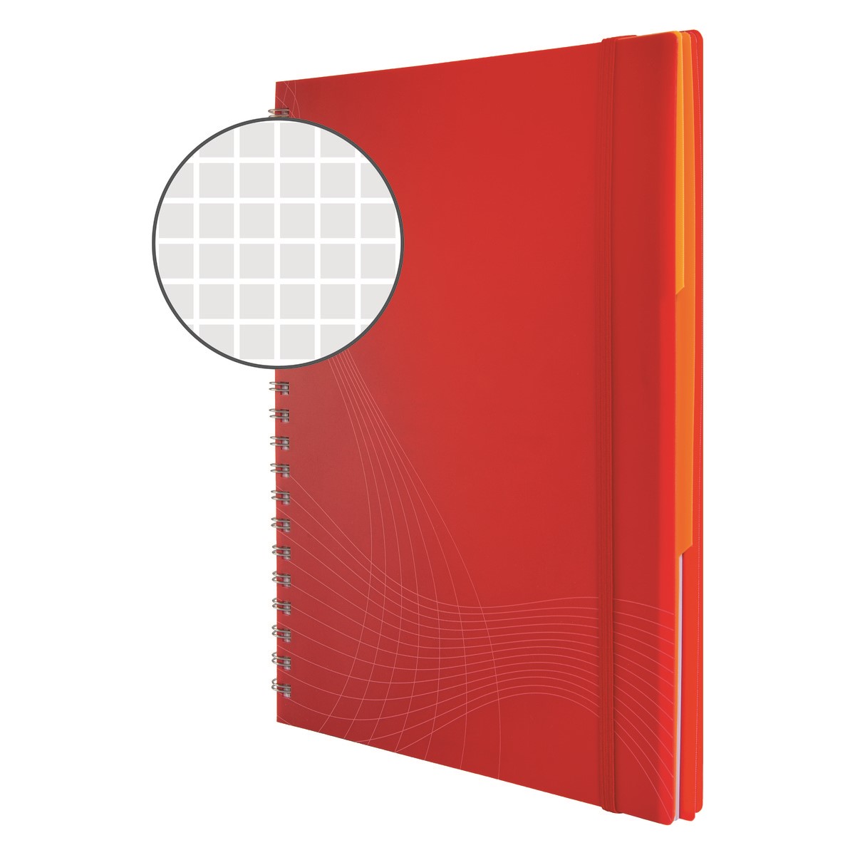 Mit dem kariertem notizio. Notizbuch 7035 von AVERY ZWECKFORM im DIN A4 Format können Sie sich ganz auf das Wesentliche konzentrieren. Dunkle Linien stören - weiße nicht! Die Notizbuch Blätter mit hellgrauem Hintergrund und weißer Lineatur strengen die Augen weniger an und lenken nicht ab. Beim Kopieren, Scannen oder Faxen werden die Hilfslinien sogar nahezu unsichtbar! Die spiralgebundene A5 Kladde mit robustem Kunstoffeinband in rot erlaubt Ihnen höchste Flexibilität und Funktionalität. Das karierte Notizbuch bietet exzellenten Schreibkomfort durch extra glattes, tintenfestes Papier mit einer Grammatur von 90 g/m². Flexibel versetzbare Register strukturieren Ihre Notizen perfekt und ein Verschlussband schützt die Notizen. Die Kopfzeile und der Rahmen sorgen für besonders übersichtliche Aufzeichnungen. Eine Dokumententasche hilft beim Aufbewahren von Visitenkarten und Belegen. Das notizio. Notizbuch ist mit einer Doppelspirale, Mikroperforation und Universallochung versehen.
