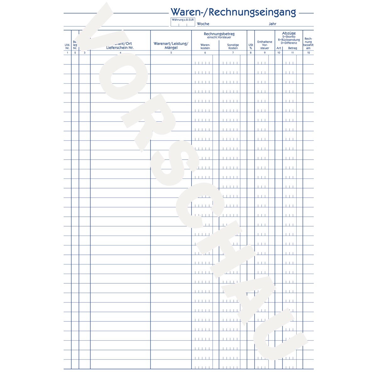 Vordruck gemäß Wareneingangs-Verordnung