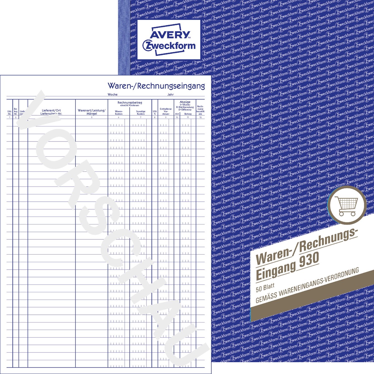 Das Waren-/Rechnungseingangsbuch 930 von AVERY ZWECKFORM im DIN A4 Buchformat dient der Wareneingangskontrolle und enthält alle hierfür notwendigen Angaben. Behalten Sie somit den Überblick über Ihren Wareneingang oder Rechnungseingang. Das Wareneingangsbuch beinhaltet 50 beidseitig bedruckte Blätter ohne Perforation zum sicheren Verbleib im Buch. Die Wareneingangsbücher von Avery Zweckform sind zuverlässige, bewährte Hilfen für Ihre Warenwirtschaft, Buchhaltung und Steuer und werden regelmäßig von Rechtsexperten geprüft.