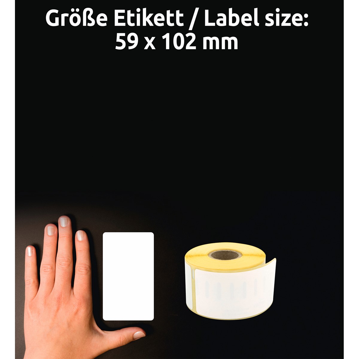 59 x 102 mm, 300 Etiketten/Rolle, Format entspricht Dymo* 1933088, einfach mit Dymo* Software beschriften