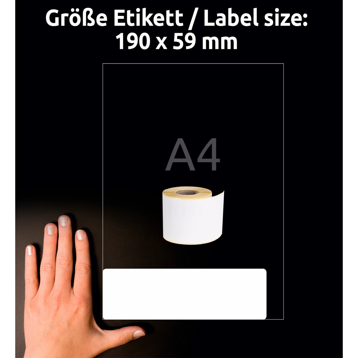 Die weißen, permanent haftenden und blickdichten Rollenetiketten AS0722480 im Format 59x190mm von AVERY ZWECKFORM eignen sichbesonders zum Beschriften von Ordnern. Die Ordneretiketten sind 100% kompatibel mit dem Dymo® Labelwriter™ LW330T, LW400 Serie, LW450 Serie, 4XL und LW Wireless. Diese Thermoetiketten entsprechen dem Dymo® Artikel S0722480. 110 Etiketten auf Rolle pro Packung. Die Rollenetiketten zeichnen sich durch eine sehr gute Klebkraft aus. Sie sind FSC® zertifiziert und frei von Bisphenol A (BPA). Wir garantieren vollste Zufriedenheit für die Avery Zweckform Rollenetiketten, oder Sie erhalten Ihr Geld zu 100% zurück (Teilnahmebedingungen unter www.avery-zweckform.de). Gestalten und drucken Sie je nach Bedarf einzelne oder auch mehrere Ordneretiketten schnell und einfach selbst mit Ihrer Dymo® Software.