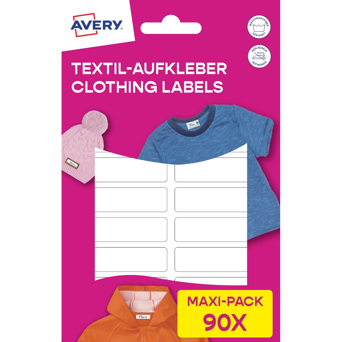 Billiger als eine verlorene Jacke! Stellen Sie sicher, dass jeder weiß, wem was gehört. Das ist einfacher als gedacht: Die praktischen, selbstklebenden Textil-Etiketten ETVET90 von Avery können ohne Bügeln oder Aufnähen ganz einfach auf Kleidungsstücke aufgeklebt werden, die gerne vergessen oder verloren gehen. Ganz einfach die schlicht weißen Namens-Etiketten mit einem Permanent Marker mit z. B. Vor- und Nachnamen beschriften, kurz trocknen lassen und einfach auf das eingenähte Marken- oder Größen-Etikett kleben. Ausnahmen sind Regenjacken, Matschhosen, etc. aus Polyester, hier kann der Aufkleber direkt auf den Stoff geklebt werden. Drücken Sie die gesamte Etikett-Fläche 5 Sekunden mit den Fingern fest und warten Sie mit dem ersten Waschen 24 Stunden, damit das Etikett eine besonders gute Haftung aufbauen kann. Die Textil-Etiketten halten sicher und fest auf den eingenähten Hersteller-Etiketten. Die dermatologisch getesteten Namens-Etiketten sind wasserfest, geeignet für die Waschmaschine bei 40°C und halten Trocknern stand.