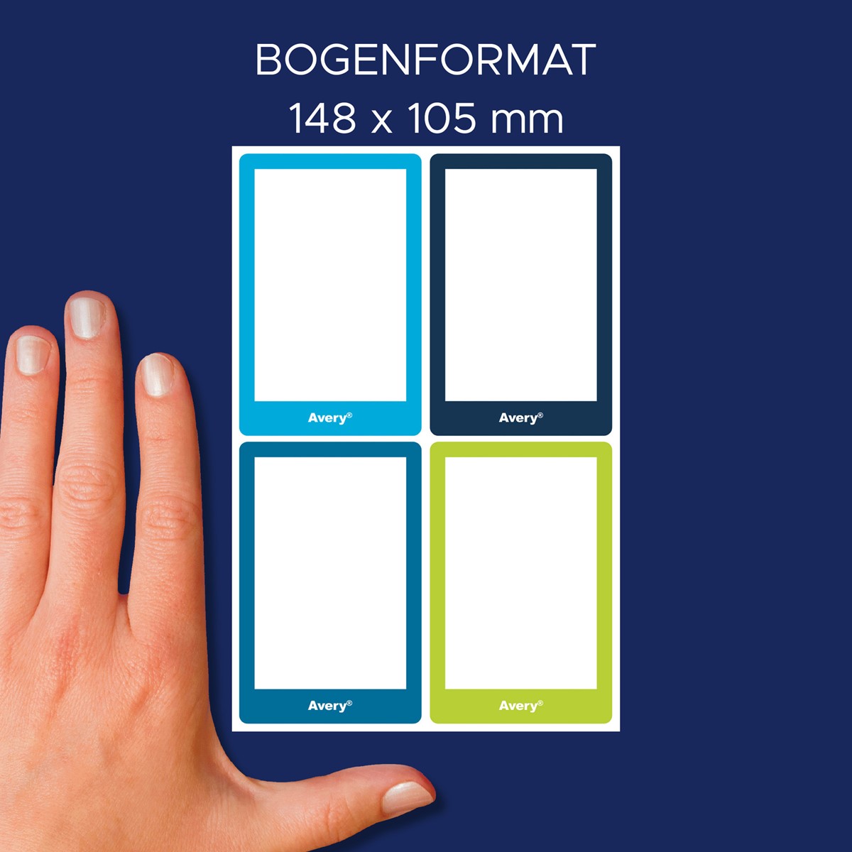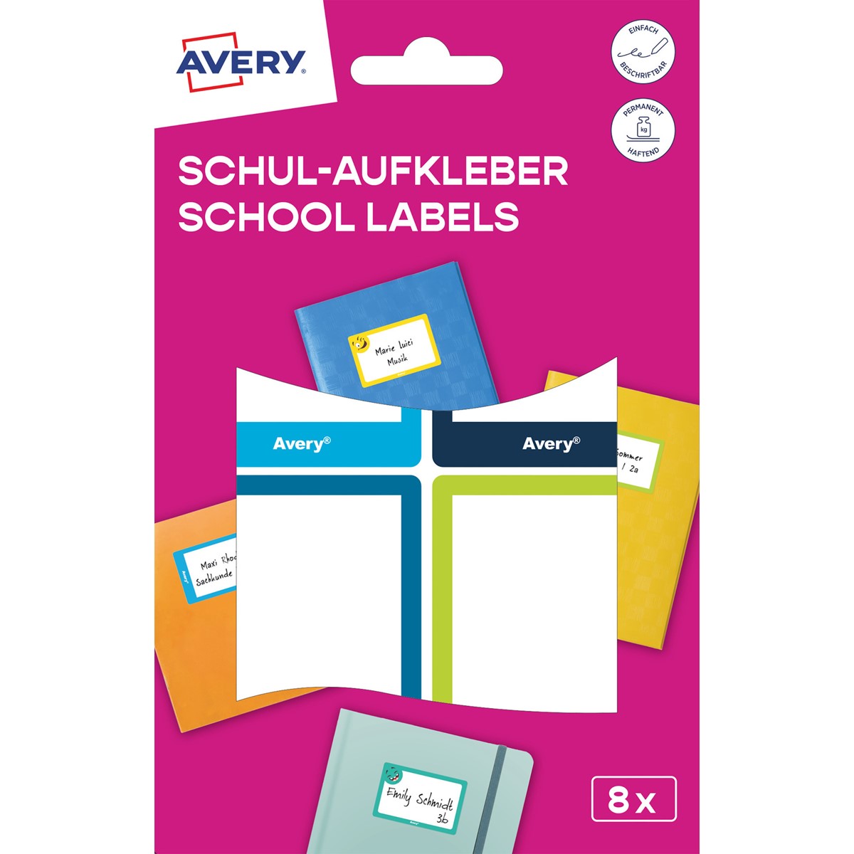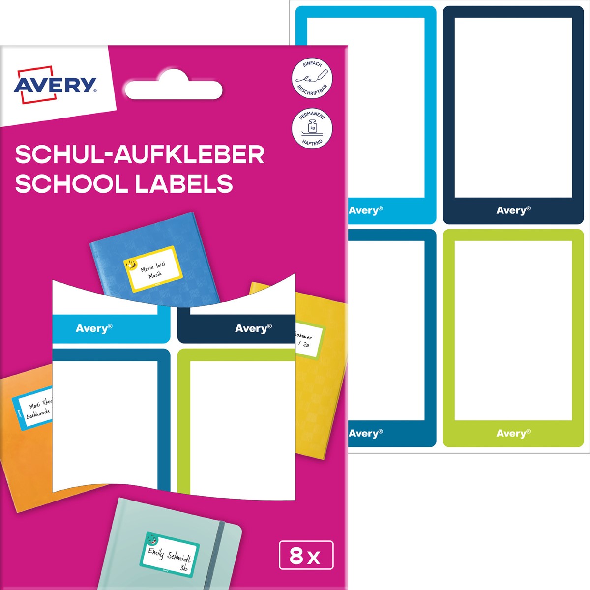 Die bunten Schul-Aufkleber SCHOOL8G in grün/blau von Avery helfen Ihnen dabei!