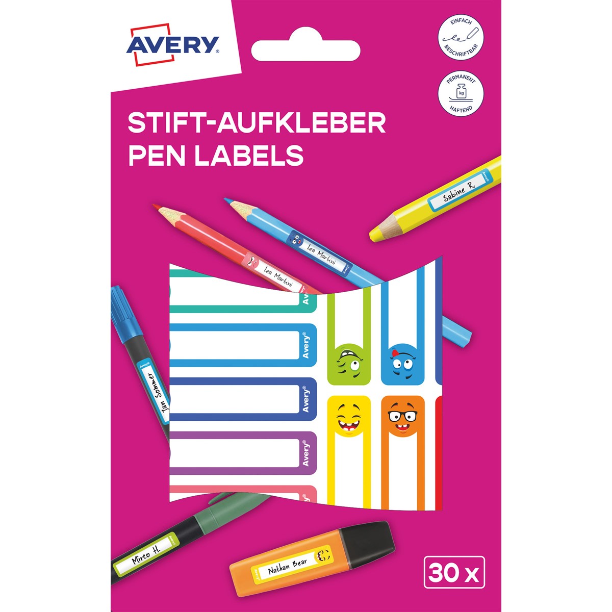 Hey, das ist mein Stift! Nö, das ist meiner! Stifte sind für alle da? Lieber nicht! Kinder verwechseln, leihen oder tauschen manchmal Ihre Stifte oder vergessen auch mal ganz gerne ihre Siebensachen irgendwo. Um den Überblick zu behalten und nicht immer neue Filzstifte kaufen zu müssen, können Sie ganz einfach alle Stifte schön sauber und bunt mit Namensaufkleber für Stifte beschriften. Die bunten Stift-Aufkleber RESMI30S mit lustigen Gesichtern von Avery helfen Ihnen dabei!
