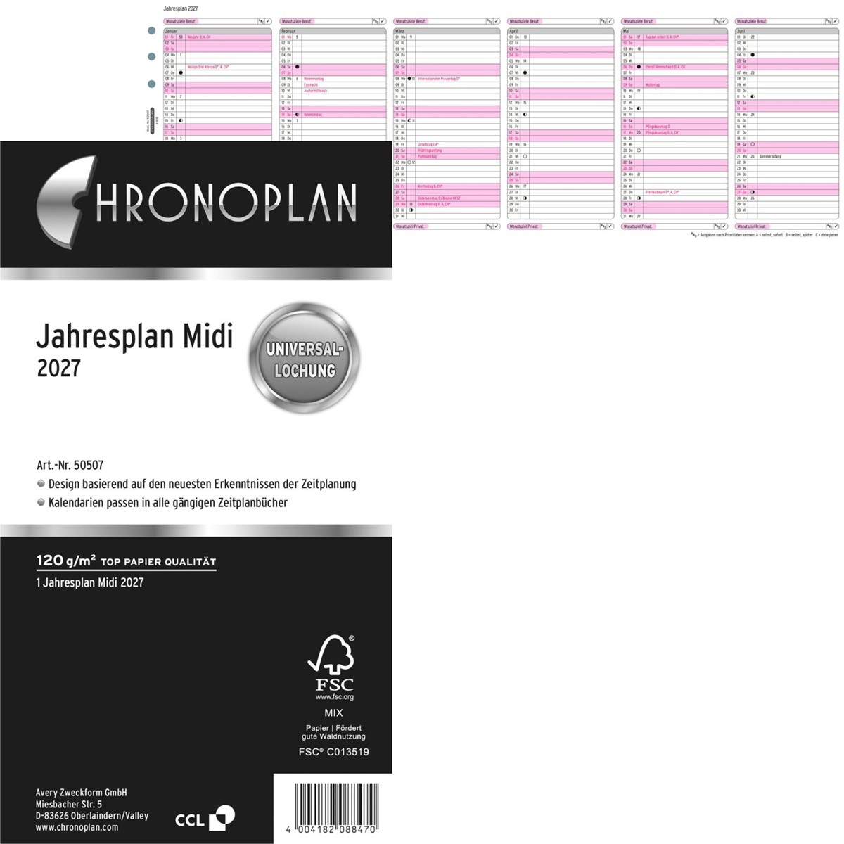 Mit dem ausklappbaren CHRONOPLAN Jahresplan 2027 im Midi Format für Ihren Terminplaner behalten Sie einen schnellen und praktischen Überblick über Ihre monatlichen Termine und Aufgaben.