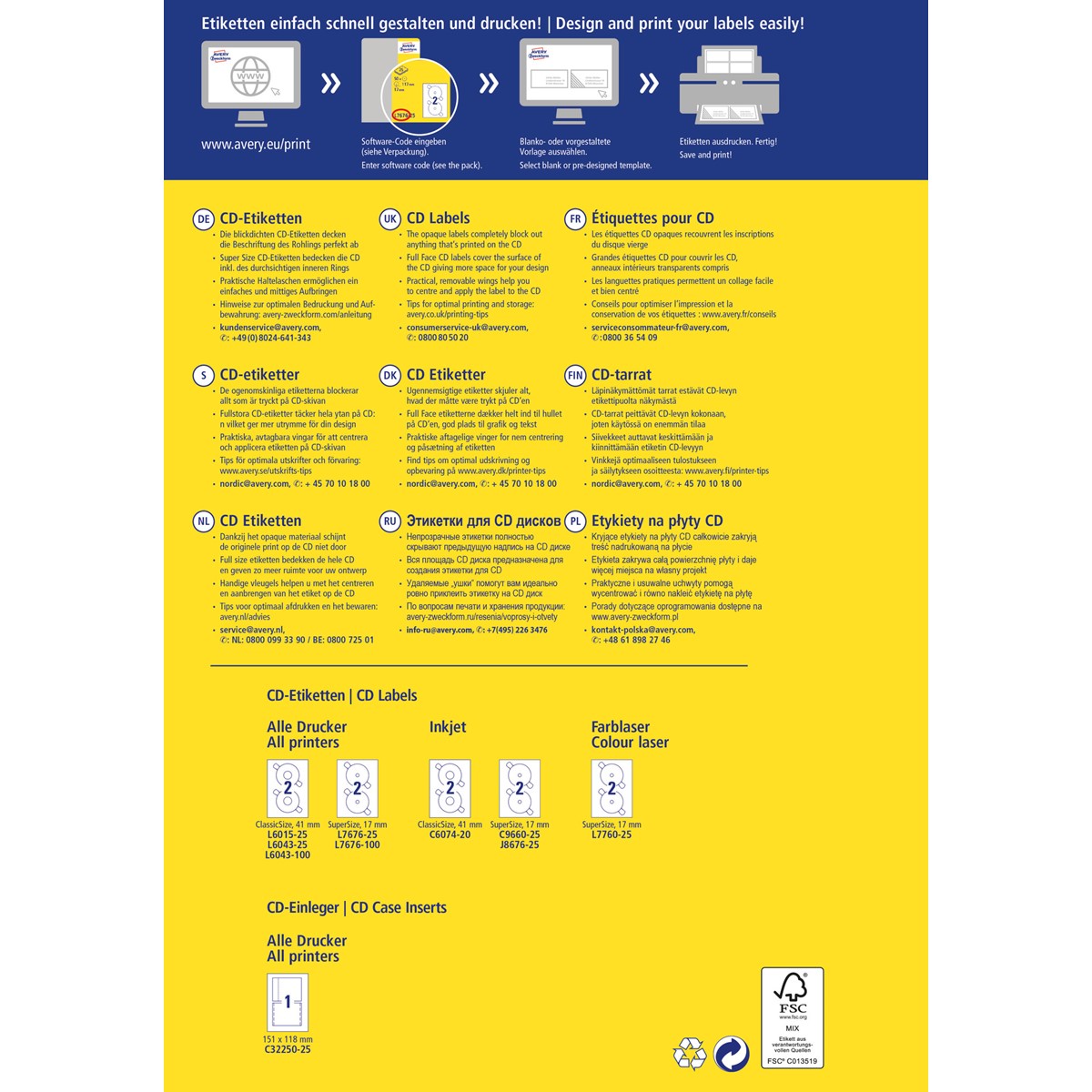Hersteller: AVERY ZWECKFORM GmbH, Miesbacherstr. 5, D-83626 Oberlaindern/Valley, www.avery.eu