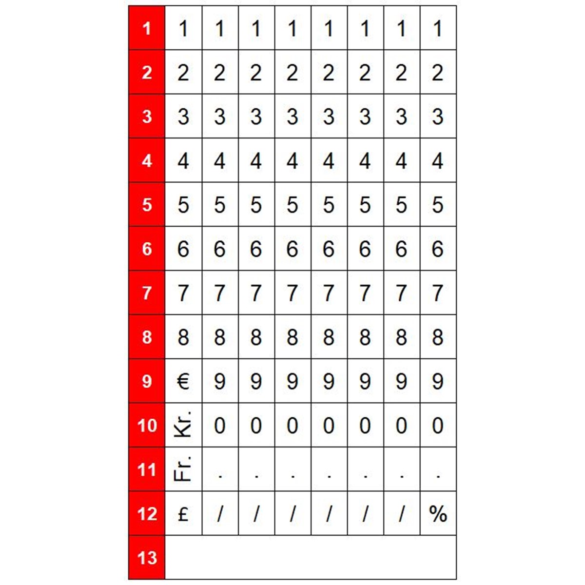 8 alphanummerische Zeichen in der Zeile, 5 mm Zeichenhöhe
