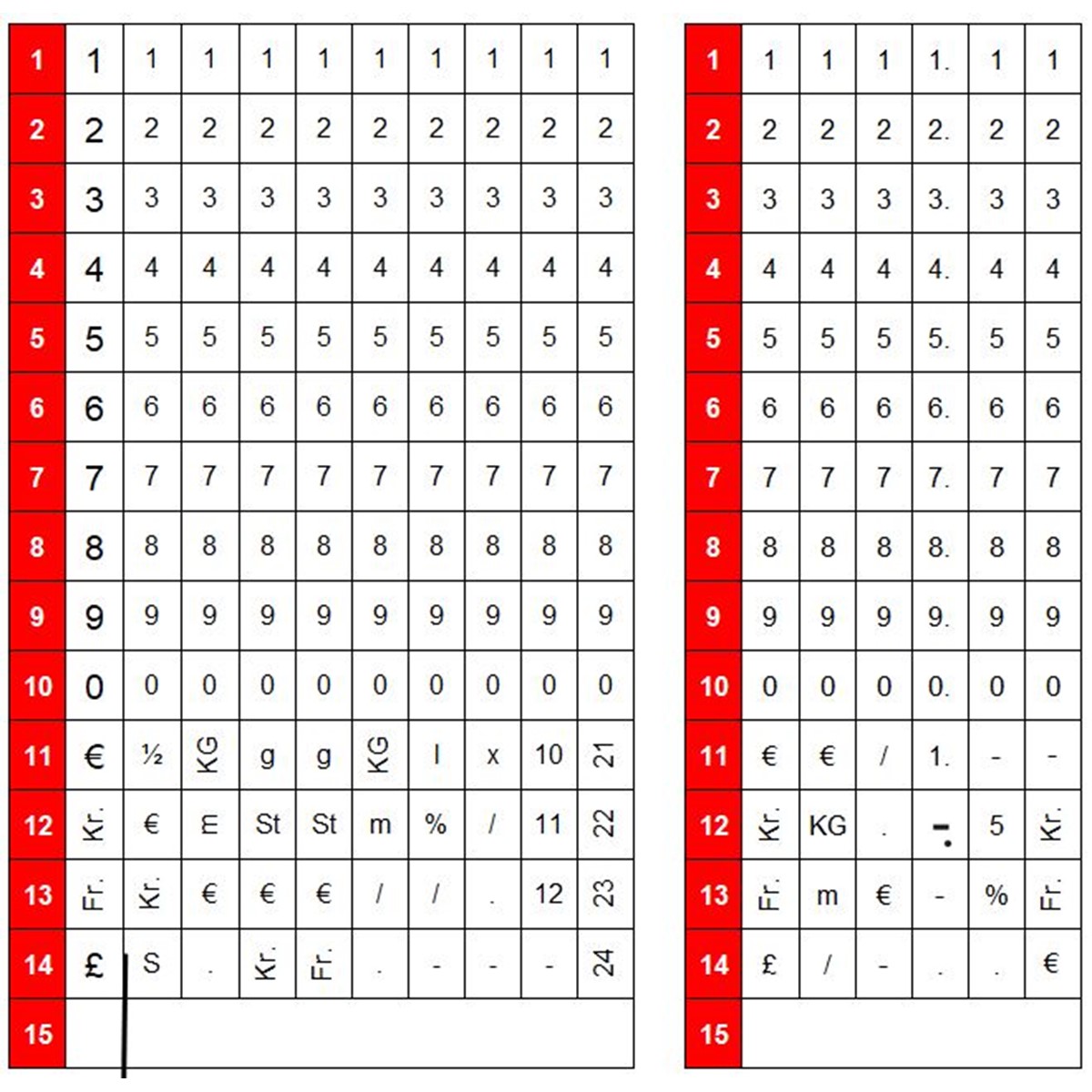 Mit 4 Währungssymbolen (£, €, Kr., Fr.)