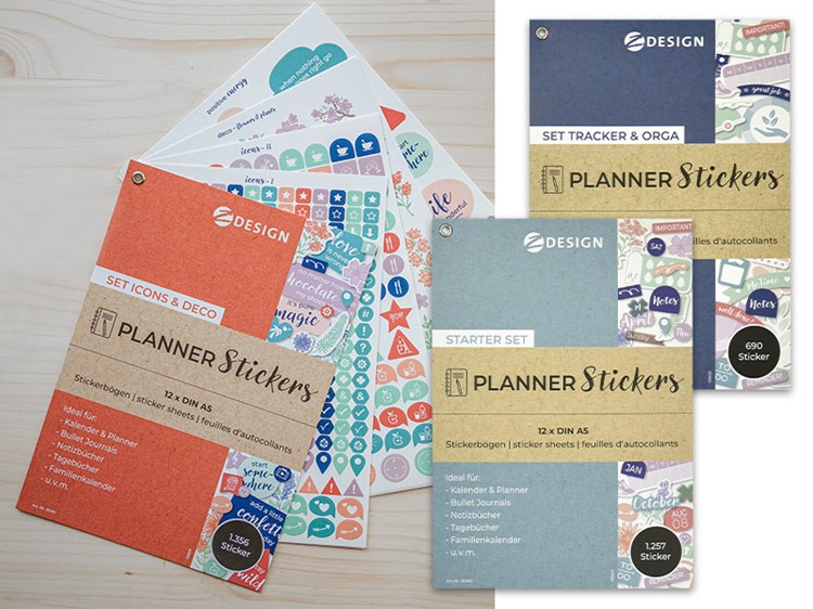 Mit den Planner Sticker Sets können Sie richtig kreativ werden! Von schlichten Einträgen wiederkehrender Termine bis zu aufwendigen Handletterings und Verzierungen – alles ist möglich.