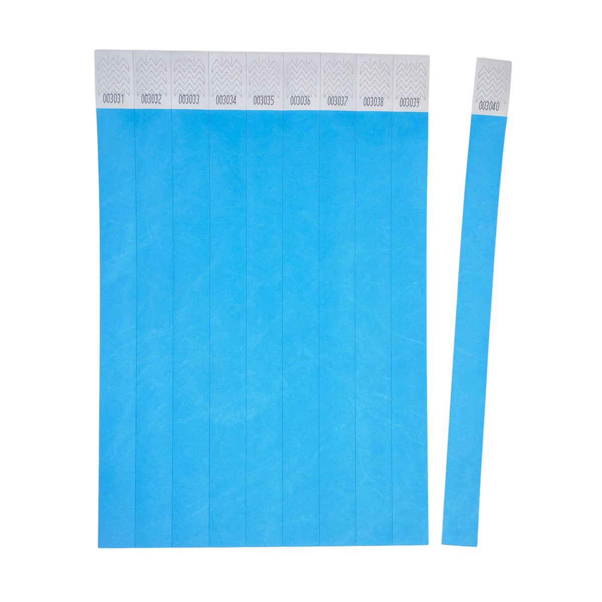 500 blaue, fortlaufend nummerierte Einlassbänder aus Tyvek® Papier-Material