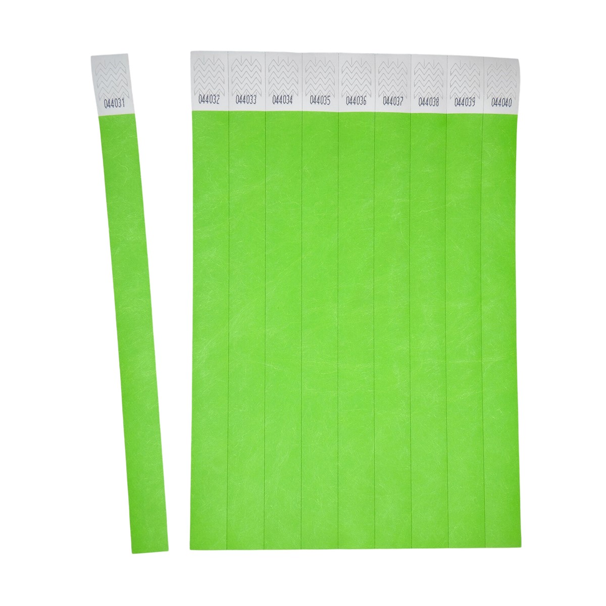500 grüne, fortlaufend nummerierte Einlassbänder aus Tyvek® Papier-Material