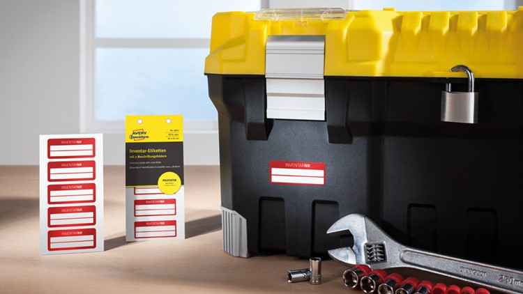 Die vorbedruckten Inventar Etiketten zur Handbeschriftung von Avery Zweckform bestehen aus speziellen Materialien für jede Anwendung. Etiketten mit Laminat für extra Schutz, aus silberner Polyesterfolie für starke Beanspruchungen, aus abziehsicherer Foie wobei die Etiketten sich nur in Einzelteilen abziehen lassen, aus Aluminium-Folie in der sich die Schrift dauerhaft in das Etikett einprägt oder aus fälschungssicherer Folie welches beim Abziehen ein auffälliges Muster hinterlässt - Sie haben die Wahl!