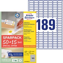 Avery Zweckform Wiederablösbare Universal-Etiketten, 63,5 x 29,6 mm, 65 Bögen, Weiß