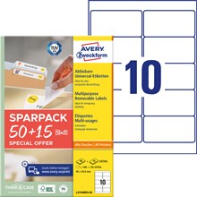 Avery Zweckform Wiederablösbare Universal-Etiketten, 96 x 50,8 mm, 65 Bögen, Weiß