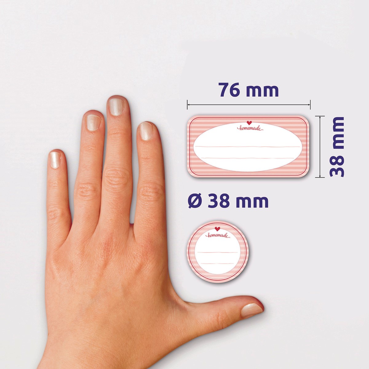 Die wunderschönen Sticker auf Rolle 4381 im runden/rechteckigen Format von Z-Design sind perfekt zum Beschriften von Marmeladen, Likören, Dips, Kekseen und vielem anderem Selbstgemachten. 600 Aufkleber "Homemade" in zarten Pastellfarben in der effizienten Großpackung. Die 600 Sticker auf Rolle wechseln das Design durch, insgesamt sind es 3 Design Varianten und 2 Formate pro Rolle. Das Format mit einem Durchmesser von 38 mm bzw. 38 x 75 mm lässt dabei ausreichend Platz zum Beschriften für Datum und Name der Lieblingsmarmelade. Die Sticker auf Rolle eignen sich perfekt für den privaten Gebrauch, aber sind auch ideal zur Verwendung im gewerblichen Bereich. Die Marmeladenetiketten kleben zuverlässig, können aber nach Gebrauch wieder abgelöst werden - somit sind die Marmeladengläser wieder verwendbar - die Umwelt dankt es.