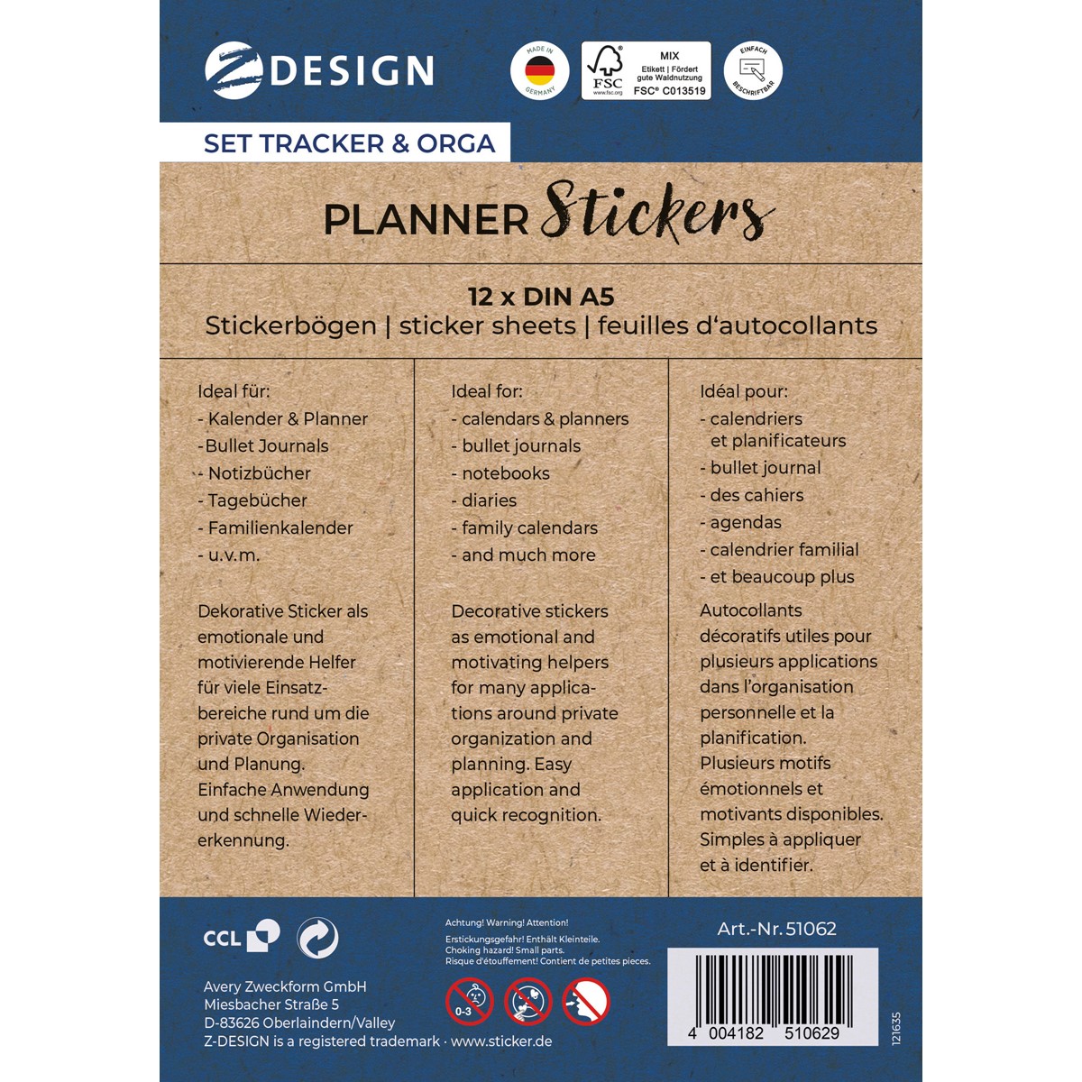 Avery Zweckform Papier Sticker "Tracker & Orga Set"