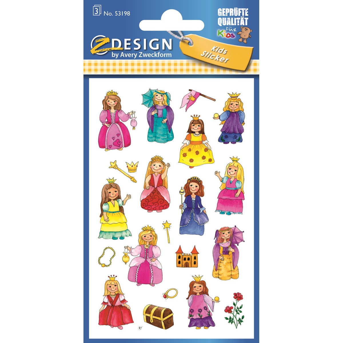 Machen Sie Ihren Kindern eine Freude! Mit den coolen und farbenfrohen Papieraufklebern von Z-Design zaubern Sie ein Lächeln auf ihre Gesichter. Ihre Kinder werden sich über die süßen Prinzessinen Sticker zum Spielen, Basteln und Sammeln freuen. Dekorieren Sie auch Briefe, Einladungen, Geschenke, Freundschaftsbücher und Poesiealben mit den zauberhaften Prinzessinen Aufklebern. Die selbstklebenden Schmucketiketten zum Gestalten und Dekorieren aus dem Hause AVERY ZWECKFORM sind natürlich kindersicher und von einwandfreier Top-Qualität, die Klebeetiketten werden regelmäßig von externen Prüfstellen kontrolliert und bestätigt.