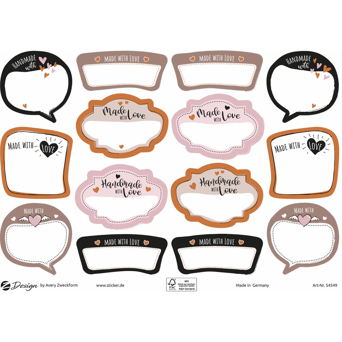 Sagen Sie es mit Liebe - mit tollen Stickern! Mit den Stickern von Z-Design zaubern Sie ein Lächeln auf Gesichter. Nicht nur Freunde und Verwandte werden sich über die Madewithlove-Sticker zum Verschönern freuen. Dekorieren Sie Marmeladen, Dips, Likören und Plätzchen- und Kekstüten mit den liebevollen, hochwertigen Aufklebern mit Bronzeprägung. Die selbstklebenden, großformatigen A5 Schmucketiketten zum Gestalten und Dekorieren aus dem Hause AVERY ZWECKFORM sind natürlich aus geprüfter, nachhaltiger Top-Qualität, die kindersicheren Klebeetiketten werden regelmäßig extern kontrolliert und bestätigt.