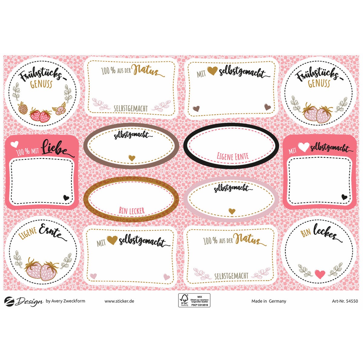 Sagen Sie es mit Liebe - mit tollen Stickern! Mit den Stickern von Z-Design zaubern Sie ein Lächeln auf Gesichter. Nicht nur Freunde und Verwandte werden sich über die Selbstgemachtes-Sticker zum Verschönern freuen. Dekorieren Sie Marmeladen, Dips, Likören und Plätzchen- und Kekstüten mit den liebevollen, hochwertigen Aufklebern mit Goldprägung. Die selbstklebenden, großformatigen A5 Schmucketiketten zum Gestalten und Dekorieren aus dem Hause AVERY ZWECKFORM sind natürlich aus geprüfter, nachhaltiger Top-Qualität, die kindersicheren Klebeetiketten werden regelmäßig extern kontrolliert und bestätigt.