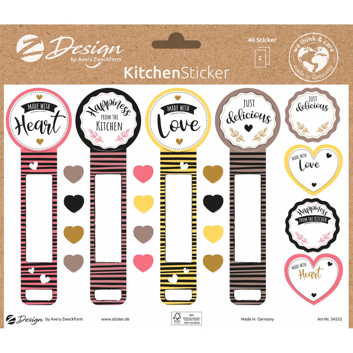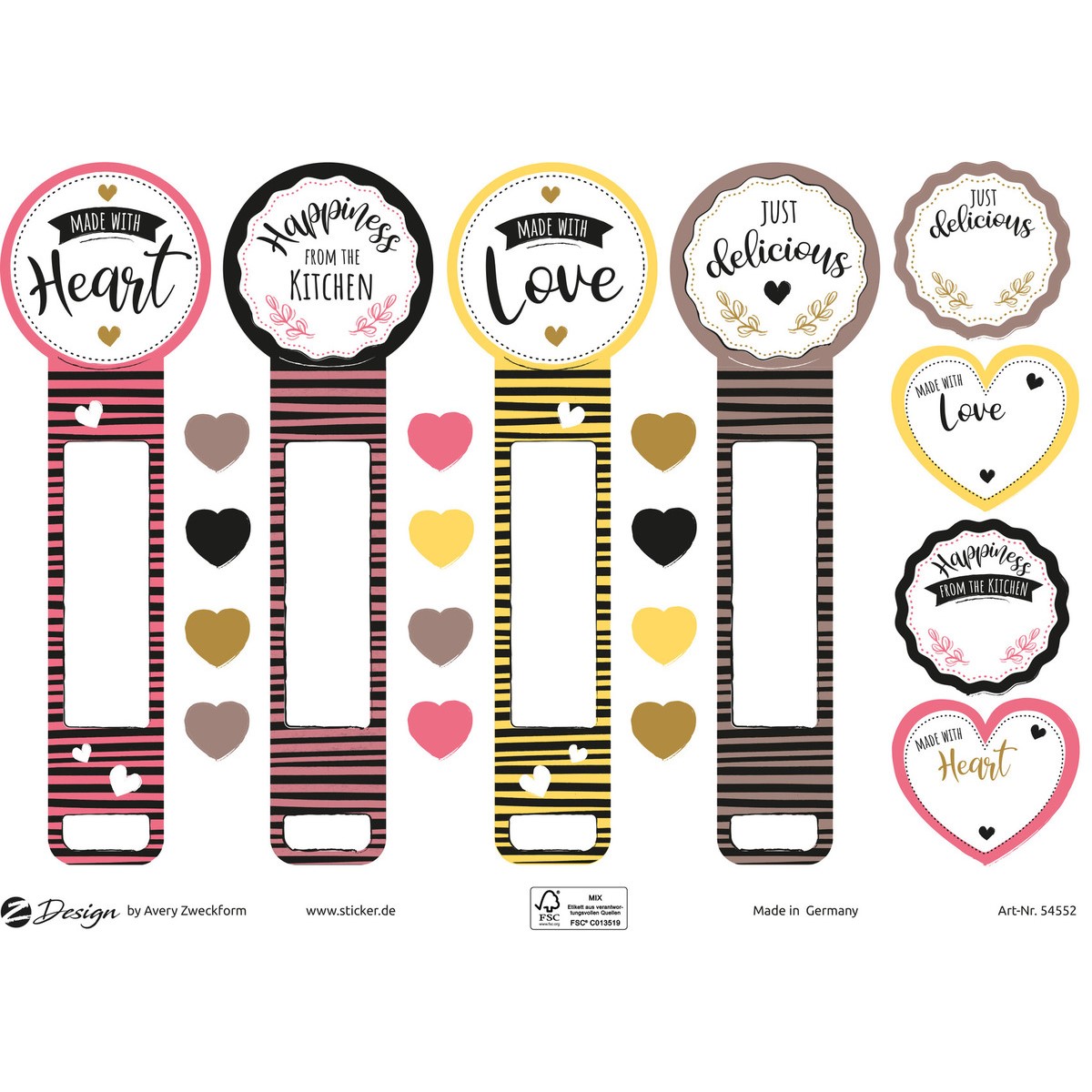 Sagen Sie es mit Liebe - mit tollen Stickern! Mit den Stickern von Z-Design zaubern Sie ein Lächeln auf Gesichter. Nicht nur Freunde und Verwandte werden sich über die Beschriftungssticker und Siegelaufkleber zum Verschönern freuen. Dekorieren Sie Marmeladen, Dips, Likören und Plätzchen- und Kekstüten mit den liebevollen, hochwertigen Aufklebern mit Goldprägung. Die selbstklebenden, großformatigen A5 Schmucketiketten zum Gestalten und Dekorieren aus dem Hause AVERY ZWECKFORM sind natürlich aus geprüfter, nachhaltiger Top-Qualität, die kindersicheren Klebeetiketten werden regelmäßig extern kontrolliert und bestätigt.