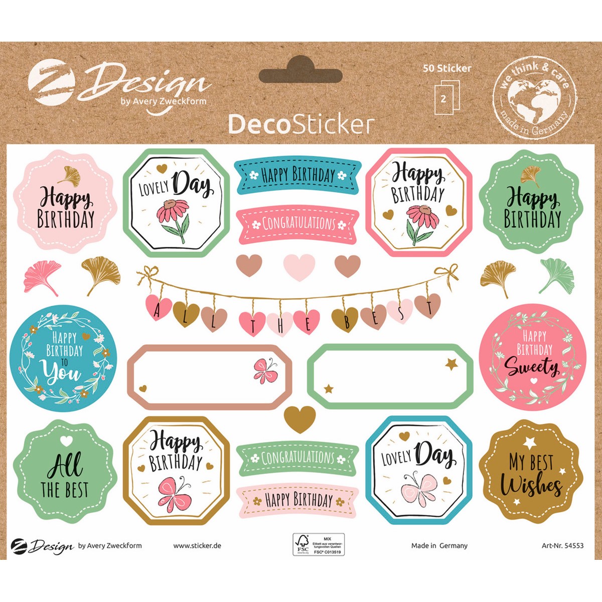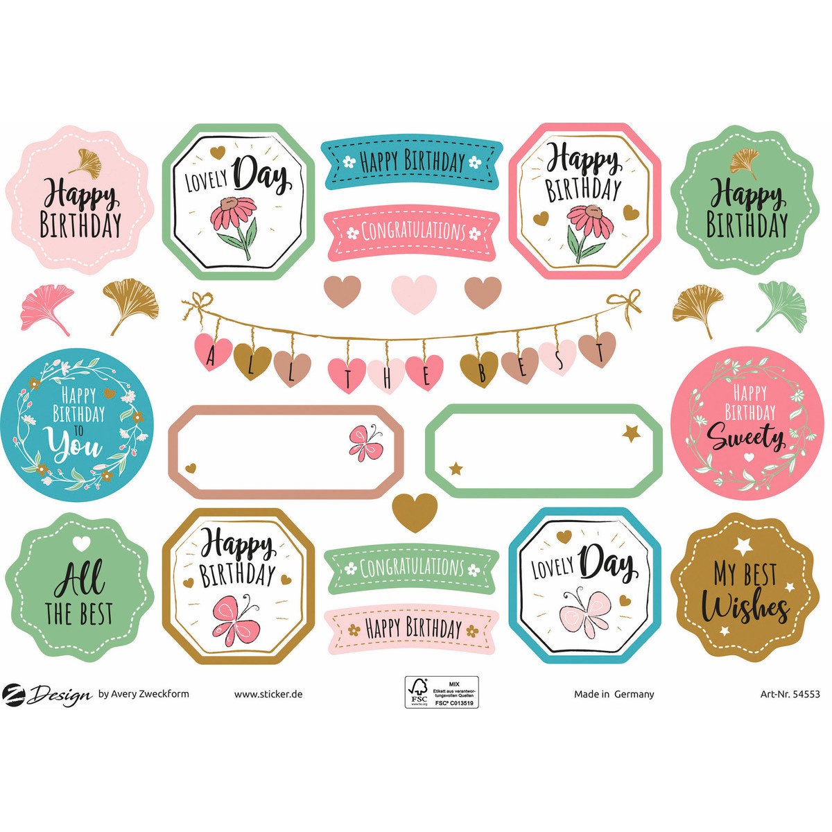 Sagen Sie es mit Liebe - mit tollen Stickern! Mit den Stickern von Z-Design zaubern Sie ein Lächeln auf Gesichter. Nicht nur Freunde und Verwandte werden sich über die Happy Birthday-Sticker zum Verschönern freuen. Dekorieren Sie Karten, Briefe, Mitbringsel, das Fläschchen Wein oder Geschenke mit den liebevollen, hochwertigen Aufklebern mit Goldprägung. Die selbstklebenden, großformatigen A5 Schmucketiketten zum Gestalten und Dekorieren aus dem Hause AVERY ZWECKFORM sind natürlich aus geprüfter, nachhaltiger Top-Qualität, die kindersicheren Klebeetiketten werden regelmäßig extern kontrolliert und bestätigt.