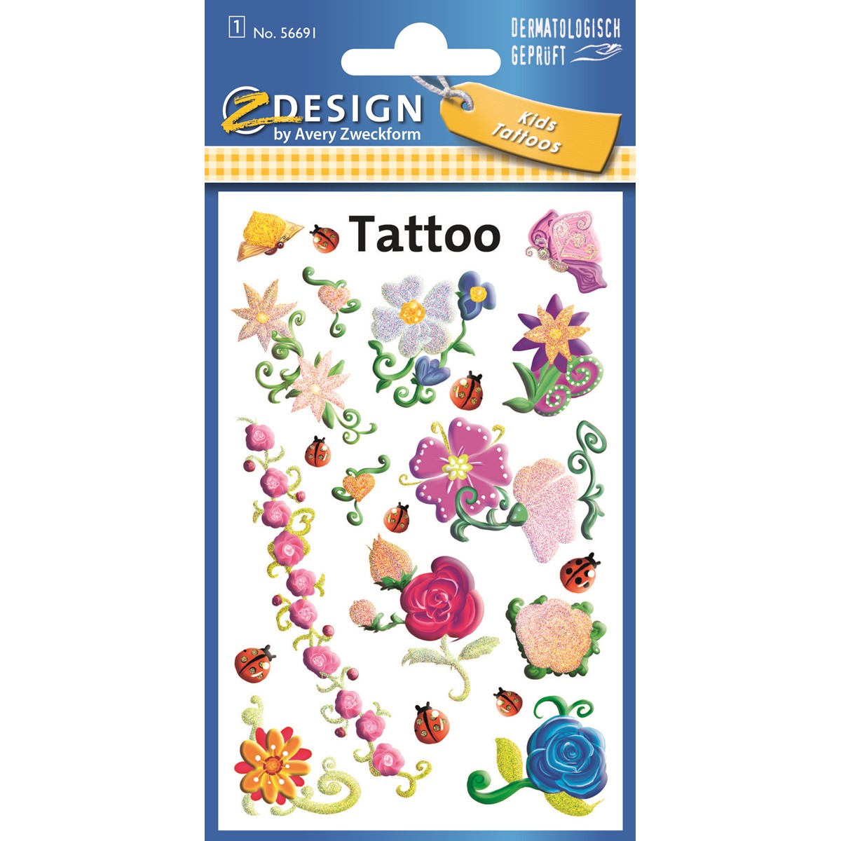 Coole Tattoos für coole kids! Überraschen Sie Ihre Kids mit tollen Tattoos auf der nächsten Geburtstagsparty. Die Kinder werden die zauberhaften Blumen Tattoos lieben! Die temporären Tattoos für die Haut von Z-Design aus dem Hause AVERY ZWECKFORM sind natürlich kindersicher, von einwandfreier Top-Qualität, dermatologisch geprüft und werden regelmäßig von externen Prüfstellen kontrolliert.