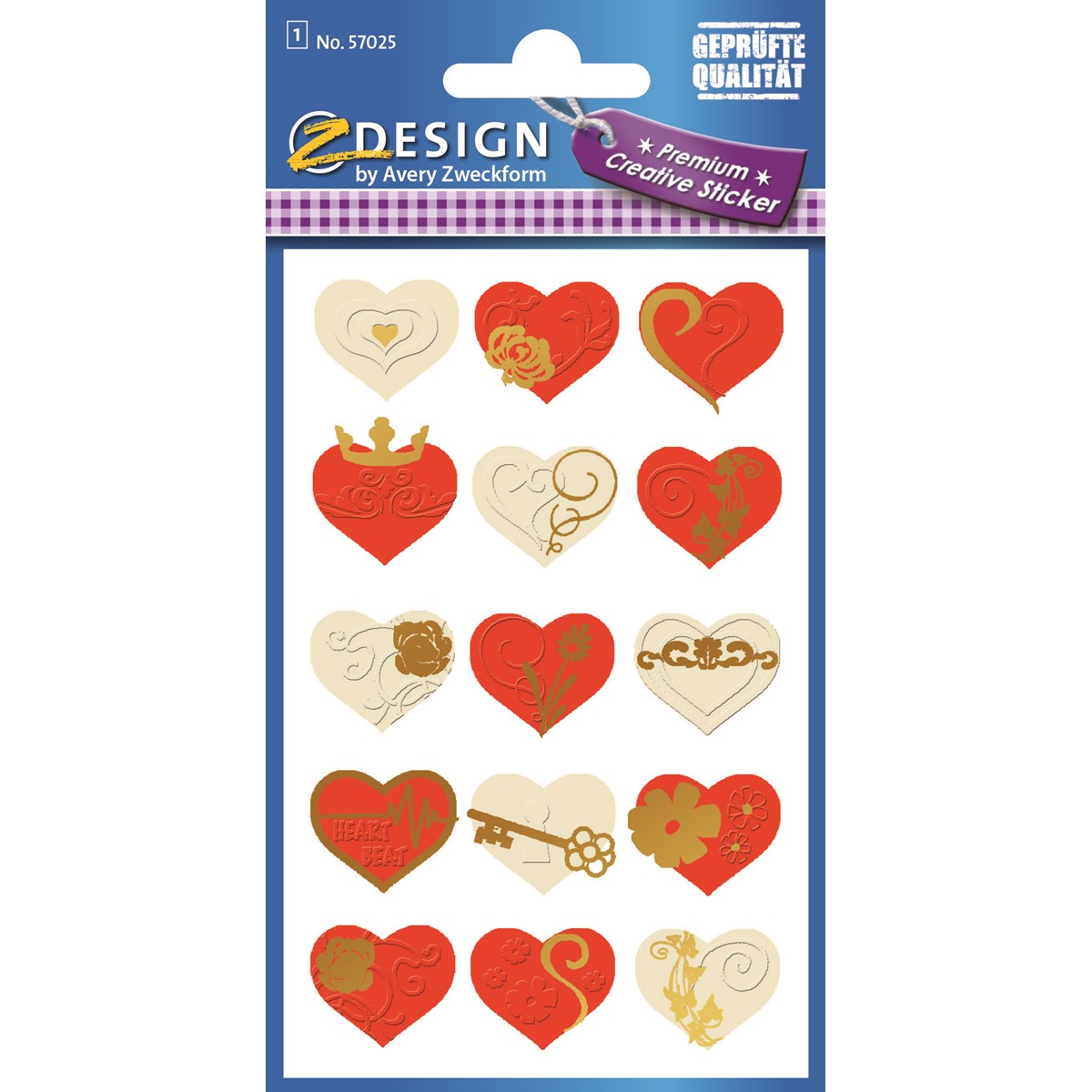 Einfach kreativ sein mit tollen Stickern! Mit den wunderschönen und hochwertigen Premium Papieraufklebern von Z-Design zaubern Sie ein Lächeln auf Gesichter. Nicht nur Freunde und Verwandte werden sich über die traumhaft schönen Herz Sticker mit Gold- und Reliefprägung freuen. Dekorieren Sie Briefe, Einladungen, Geschenke, Freundschaftsbücher und Poesiealben mit den wunderhübschen Herz Aufklebern. Die selbstklebenden Schmucketiketten zum Gestalten und Dekorieren aus dem Hause AVERY ZWECKFORM sind natürlich aus geprüfter Top-Qualität, die kindersicheren Klebeetiketten werden regelmäßig extern kontrolliert und bestätigt.