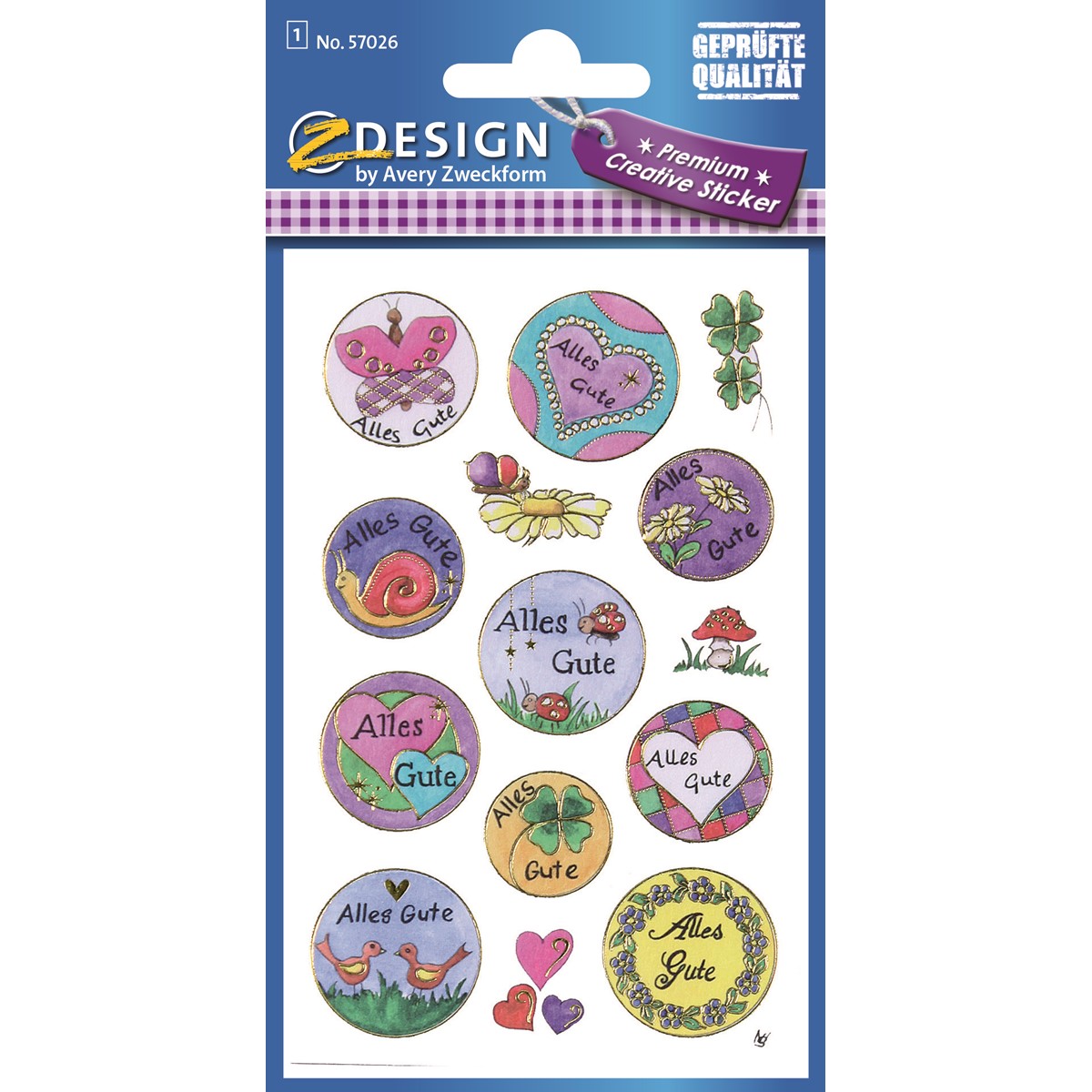 Einfach kreativ sein mit tollen Stickern! Mit den wunderschönen und hochwertigen Premium Papieraufklebern von Z-Design zaubern Sie ein Lächeln auf Gesichter. Nicht nur Freunde und Verwandte werden sich über die traumhaft schönen Glückwunsch Sticker mit Gold- und Reliefprägung freuen. Dekorieren Sie Briefe, Einladungen, Geschenke, Freundschaftsbücher und Poesiealben mit den wunderhübschen "Alles Gute" Aufklebern. Die selbstklebenden Schmucketiketten zum Gestalten und Dekorieren aus dem Hause AVERY ZWECKFORM sind natürlich aus geprüfter Top-Qualität, die kindersicheren Klebeetiketten werden regelmäßig extern kontrolliert und bestätigt.