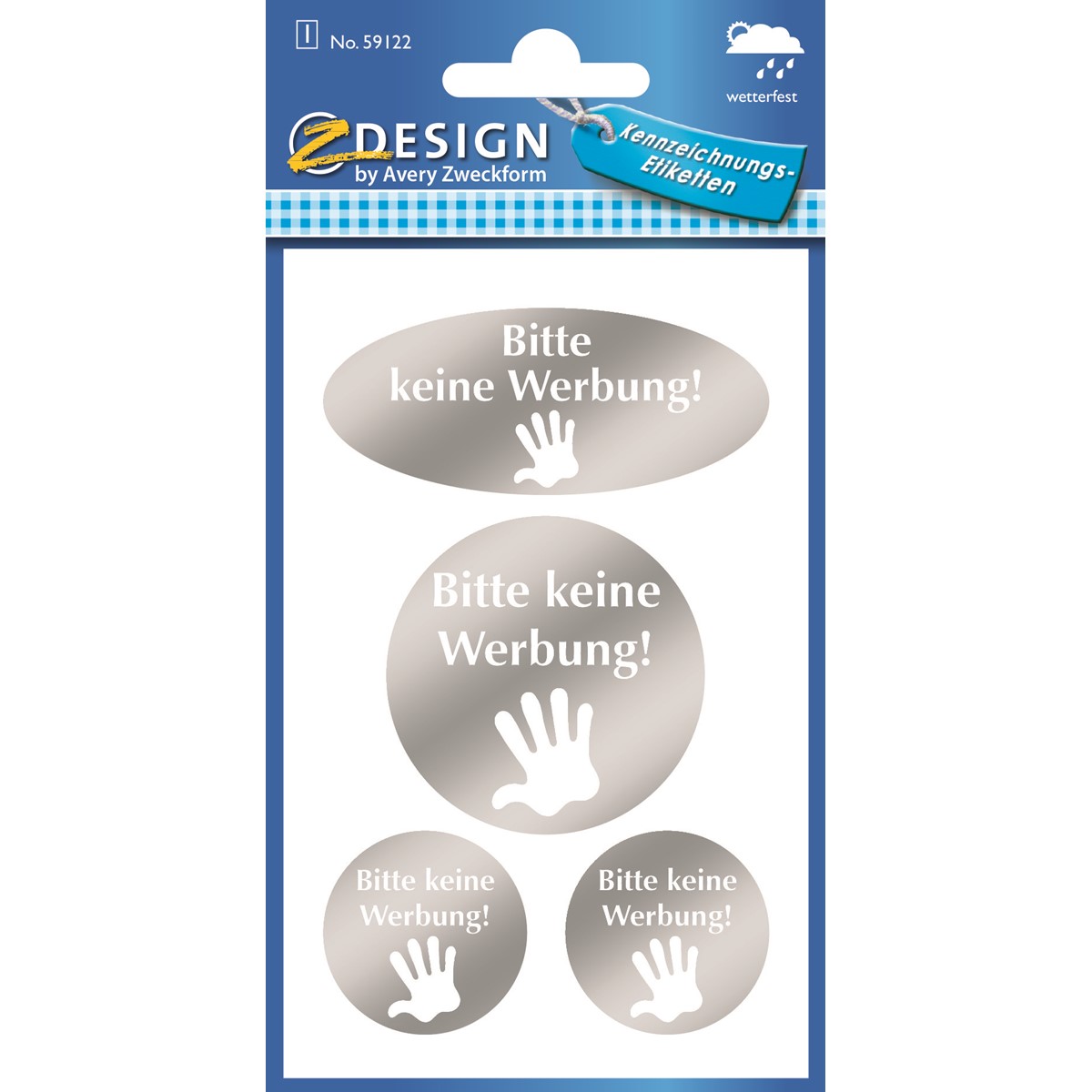 Z-Design Hinweisetiketten "Keine Werbung silber"